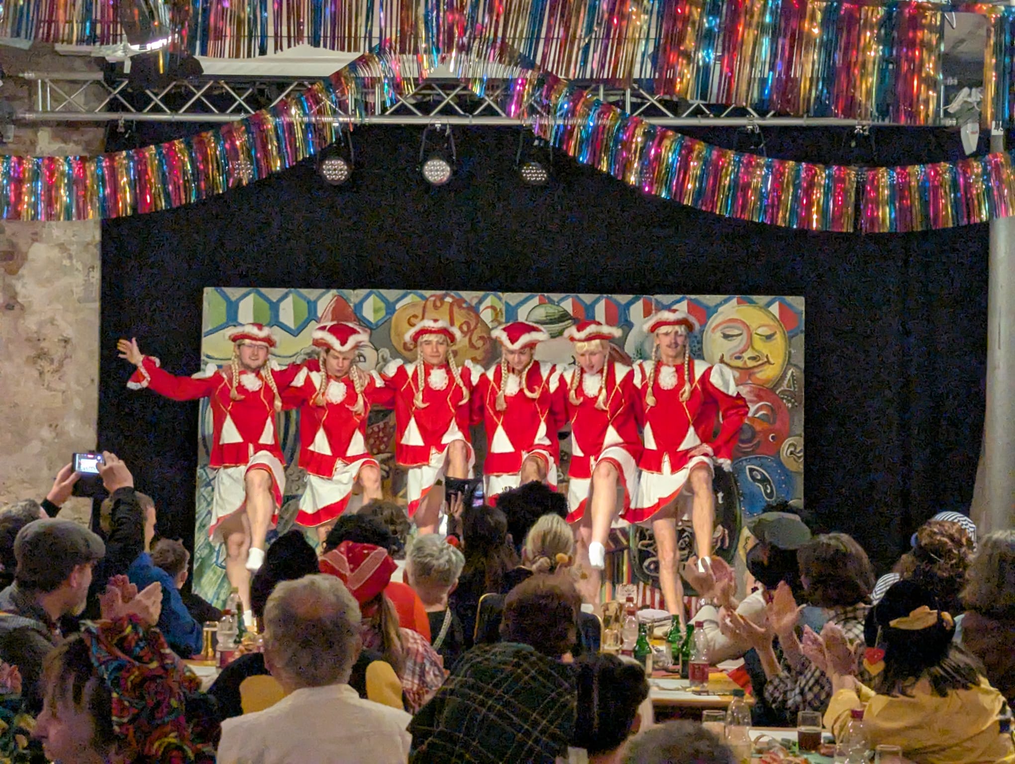 Ein weiterer Höhepunkt war die Tanzeinlage der Jungjung-Falkensteiner, die als sexy Funkenmariechen auftraten. Mit dabei waren Simon und Samuel Pfaff, Manuel und Marius Armbruster, Thorben Stein sowie Leon Kopp, die mit Witz und Charme das Publikum zum Toben brachten.