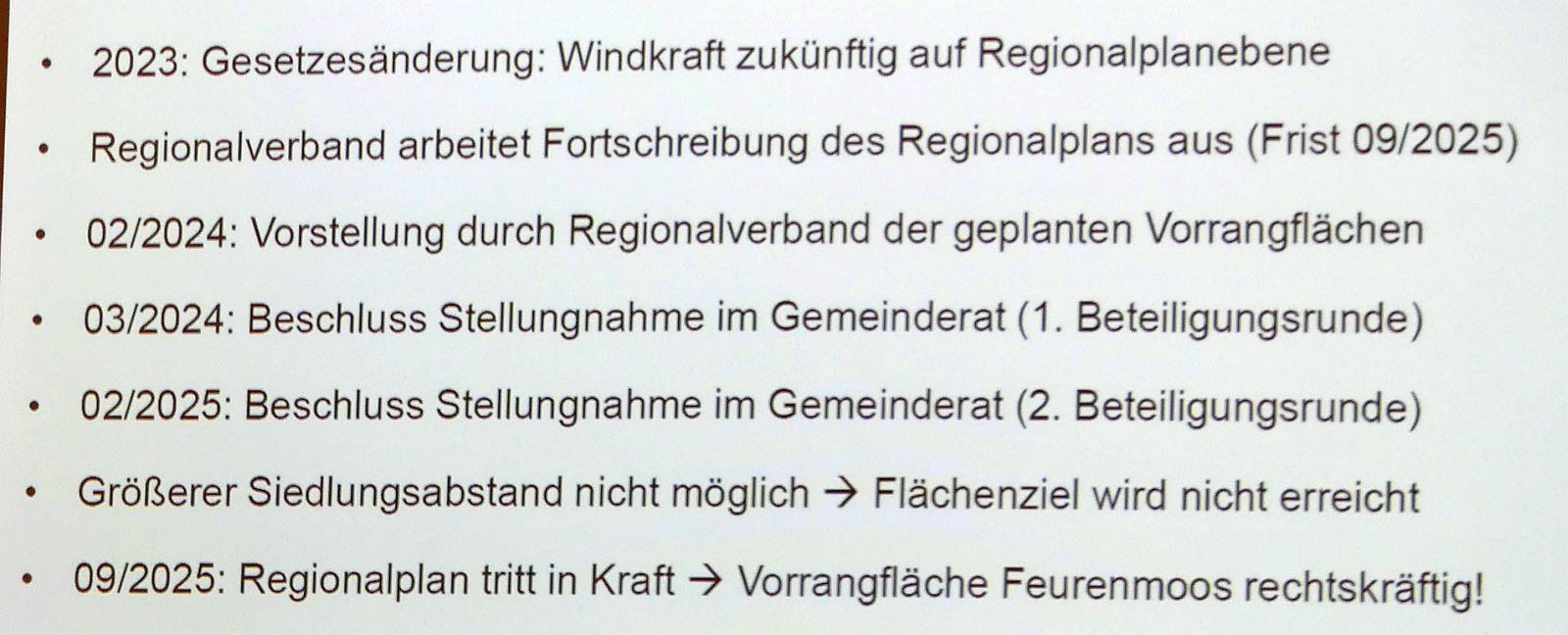 Eisenlohr stellte schließlich die Städtische Stellungnahme, ergänzt um die Forderung nach einer automatischen Löschanlage in den Gondeln und die Bürgeranfragen zur Abstimmung. Dafür gab es ein einstimmiges Votum.