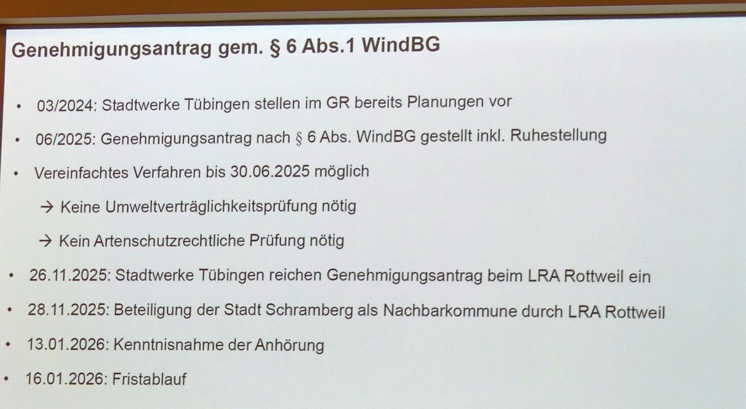 Schramberg. In Anwesenheit einiger weniger Gegner des Projektes im Publikum hat zunächst Oberbürgermeisterin Dorothee Eisenlohr ausführlich die Geschichte der verbummelten Mail geschildert. Sie war im Rathaus eingetroffen, ging dann an eine Stelle, die nicht zuständig war. Eine Person dort habe die Mail genommen, aber nicht weitergeleitet und wohl gelöscht. Allen in der Verwaltung sei klar, dass der Vorgang die Stadt in eine „ernste und prekäre Lage“ gebracht habe.