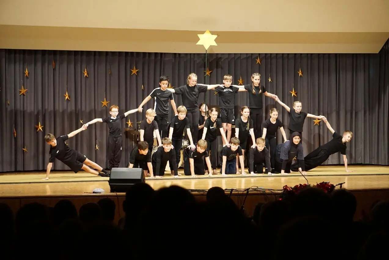 Sportlich-kreativ ging es mit der Klasse 6c weiter, die mit einer choreografierten Aufführung beeindruckte – gekrönt von einem gemeinsamen Weihnachtsbaum aus Menschen.