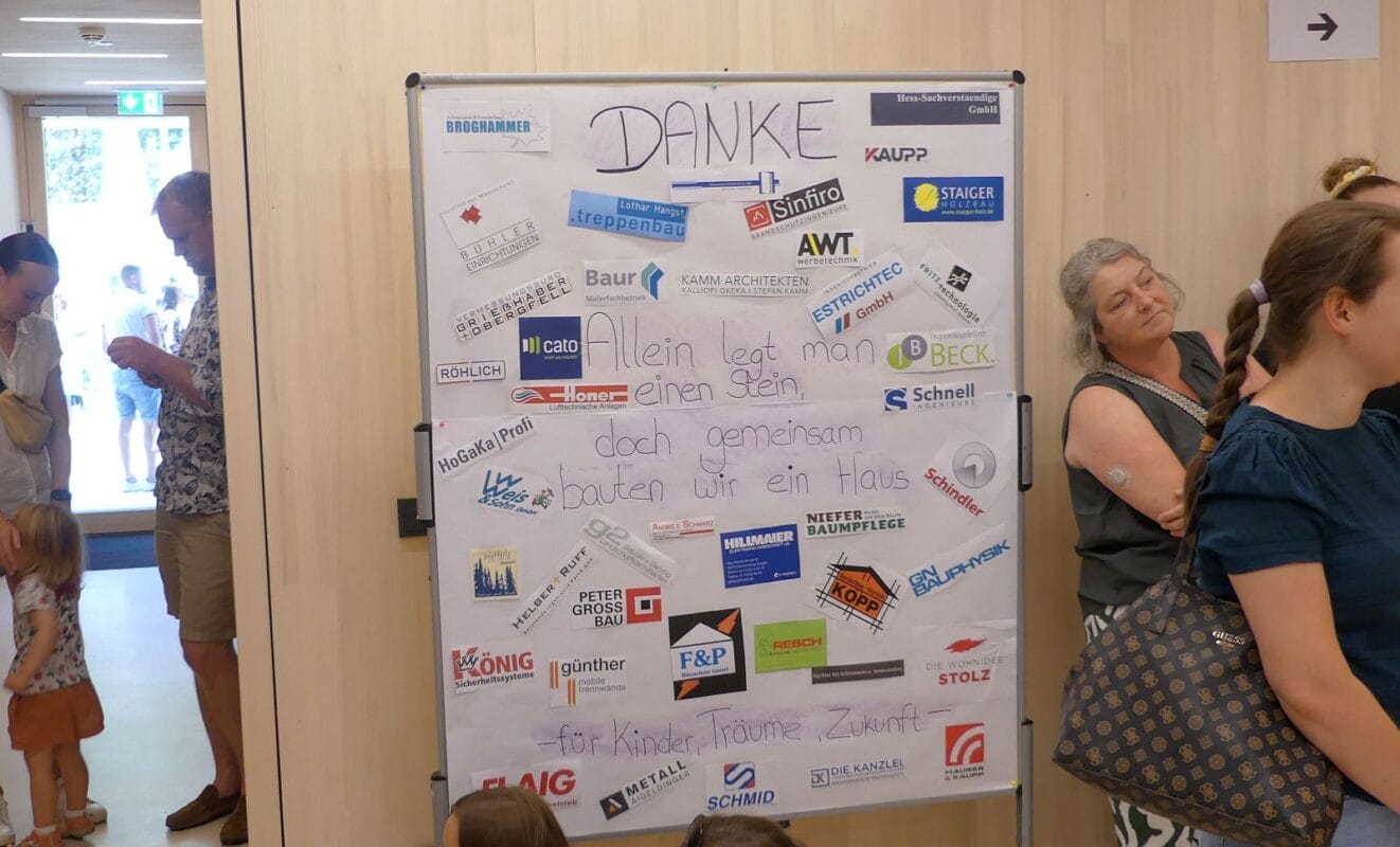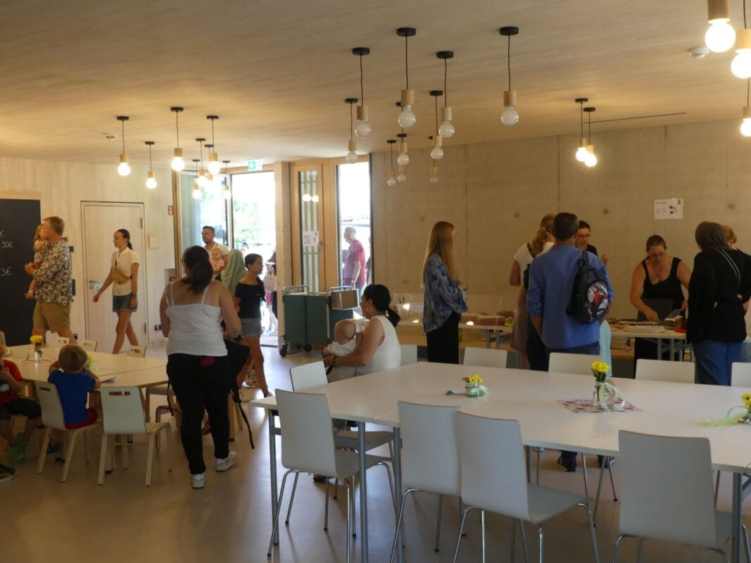 Jedenfalls freute sich Eisenlohr über das „toll gesungene Lied“, die zahlreichen Gäste, das Kita-Team, die vielen Eltern und die Gemeinderätinnen und -Räte. Auch die Architektinnen Kalliopi Gkeka, Franca Poos und Stefan Kamm hieß sie „in diesen wunderschönen Räumen der Kita und des Familienzentrums“ willkommen.