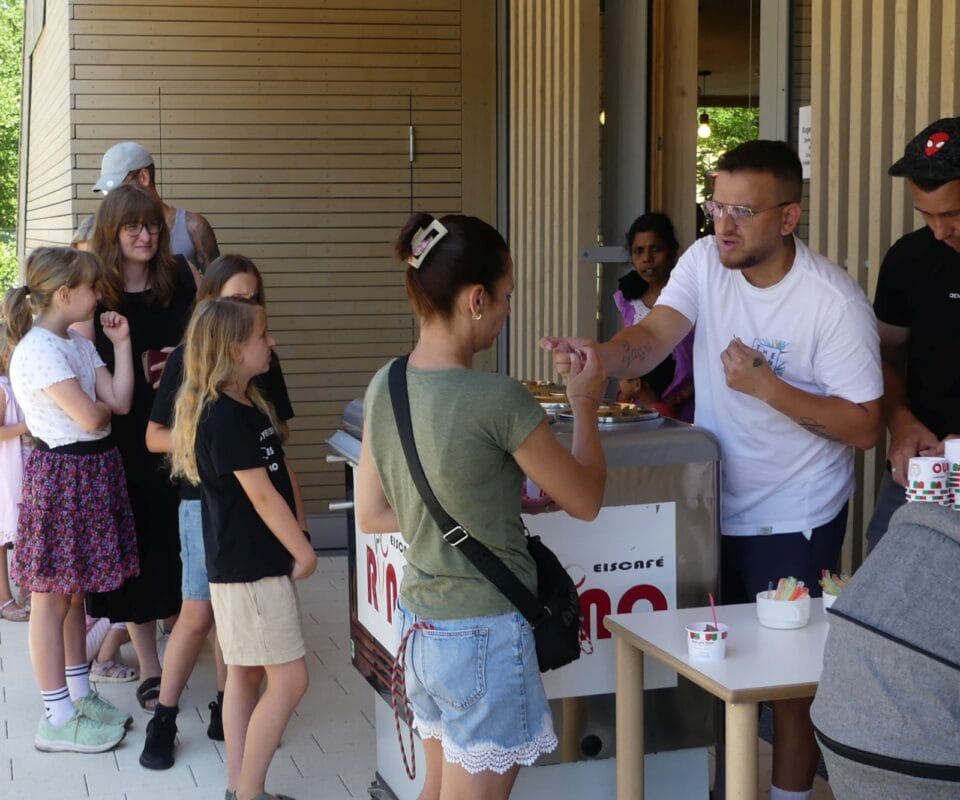 Nach der obligatorischen Schlüsselübergabe (Kamm: „Selbstverständlich ist der aus Holz!“), lud Oberbürgermeisterin Eisenlohr die Gäste zum Rundgang ein. Im Haus und im Garten hatte das Kita Team mit Helferinnen und Helfern etliche Attraktionen vorbereitet. Vom Kinderschminken über eine Zaubershow, Kaffee- und Kuchen bis hin zum Rino-Eis war vieles geboten.