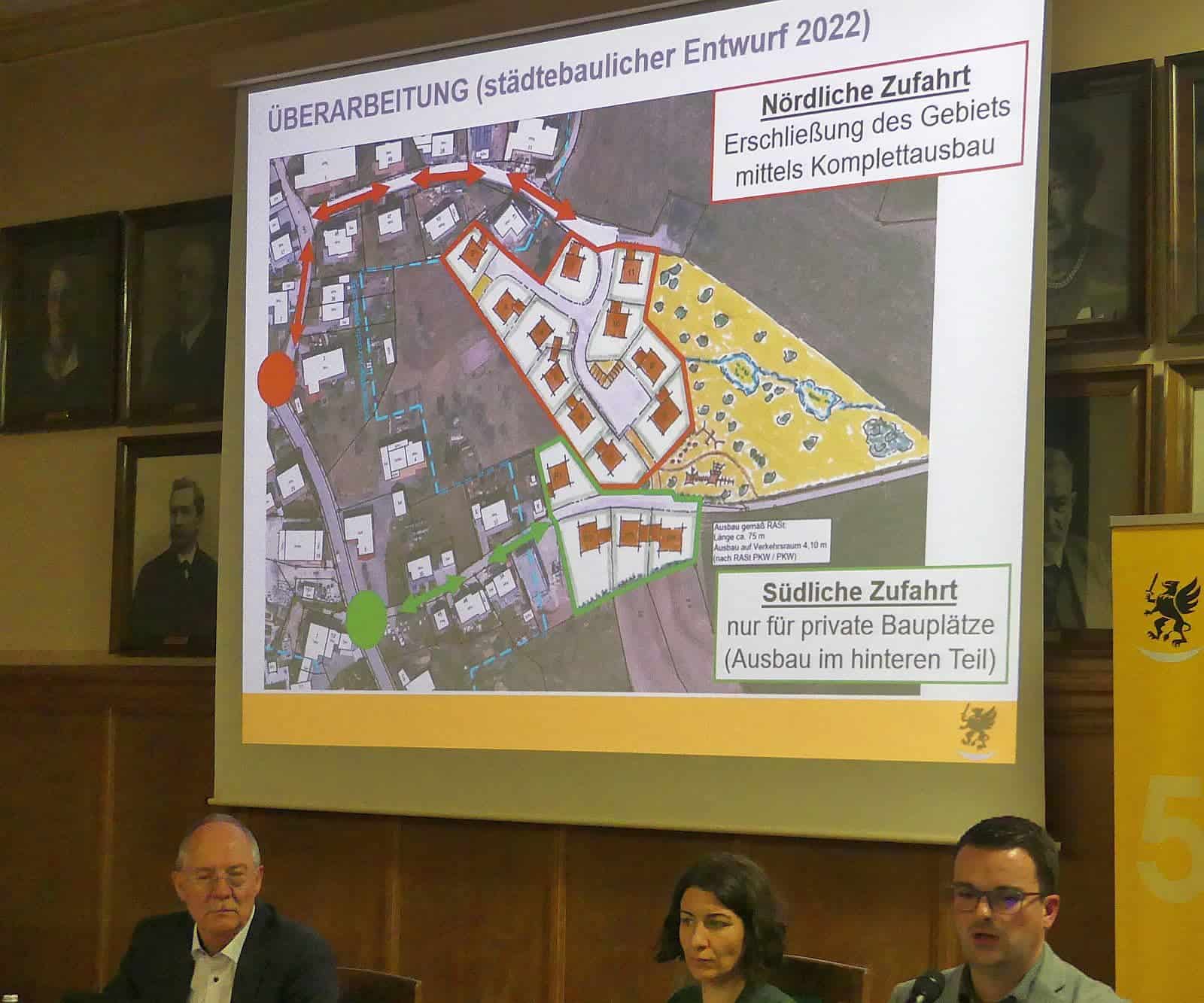 Weil man noch ganz am Anfang stehe, könne er noch nichts Konkretes zu Straßenbreite, Gehweg oder den Kosten für die Anlieger sagen. Wenn alles nach Plan läuft, könne Ende nächstes Jahr der Bebauungsplan verabschiedet werden.