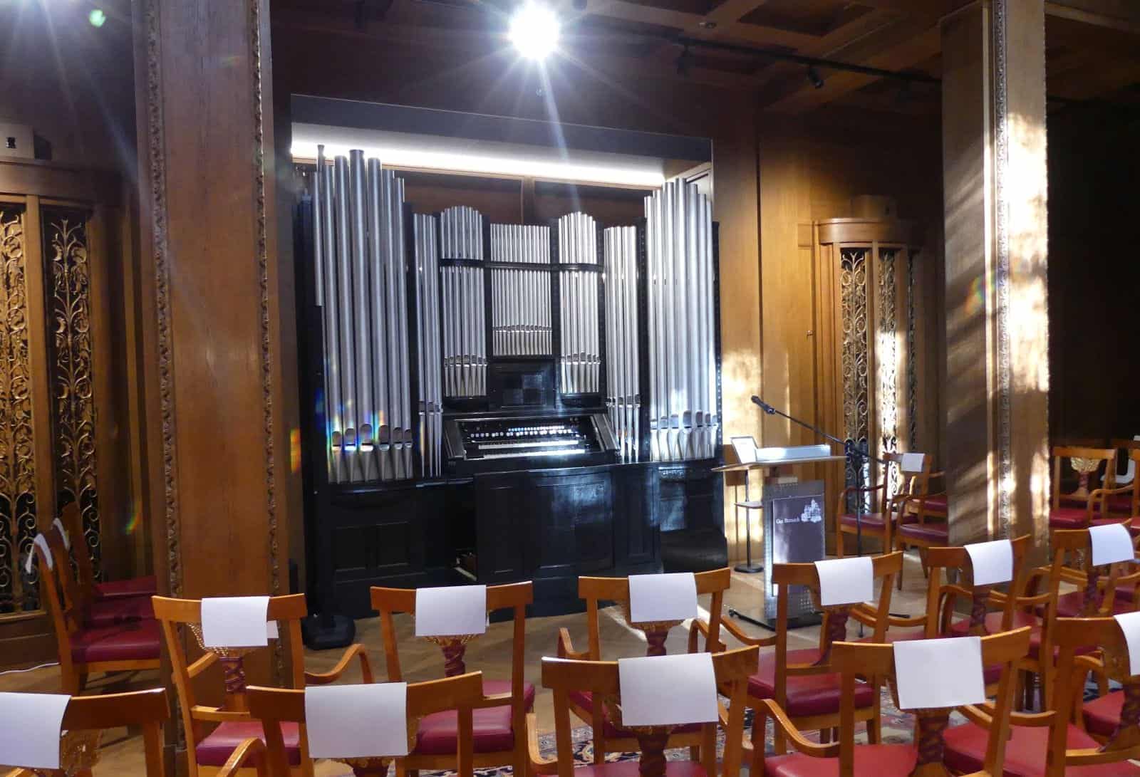 Sie, wie die vielen anderen Gäste aus der Familie Junghans, der Wirtschaft, dem Freundeskreis, den beteiligten Architekten und Denkmalschutz-, Baufachleuten und den an der Publikation beteiligten Autorinnen und Autoren bestaunen später die umfangreich sanierten Räume und die selbstspielenden Musikinstrumente.