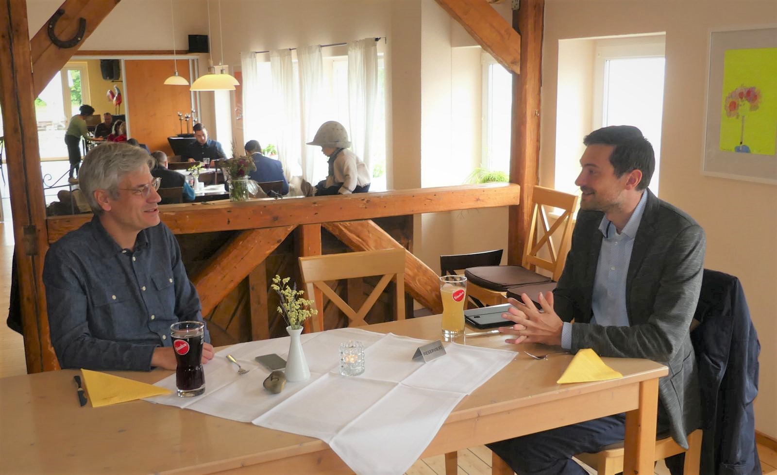 Zufällig am 100. Tag in Waldmössingen hat am Montagmittag der FDP-Landtagsabgeordnete Daniel Karrais den neuen Waldmössinger Ortsvorsteher Markus Falk besucht. Die beiden trafen sich im Gasthaus „Zum Frieder“ zum Mittagessen.