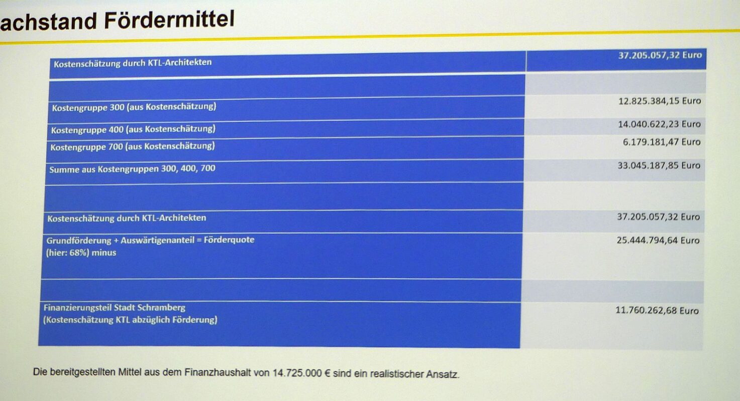 Dank der großen Zahl an „Auswärtigen“ werde das Schramberger Gymnasium eine hohe Förderquote erhalten. Dubovski hat errechnet, dass bei Sanierungskosten von gut 37 Millionen Euro bei der Stadt etwa 11,7 Millionen Euro hängen blieben. „Die im Finanzhaushalt enthaltenen 14,725 Millionen Euro sind ein realistischer Ansatz“, so Dubovski.