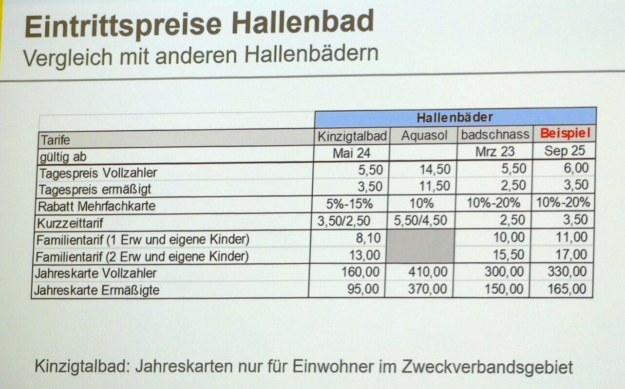 Jürgen Reuter befürchtete, die Rentner könnten sich aufs Früh- und Spätschwimmen umorientieren, dann werde der Preiserhöhungseffekt verpuffen. Da diese Zeiten nicht so stark ausgelastet seien, käme diese dem Badbetrieb entgegen, erwiderte OB Eisenlohr. Bei einer Nein-Stimme von Reuter empfahl der Ausschuss sonst einstimmig dem Gemeinderat, die Preise, wie vorgeschlagen, zu erhöhen.