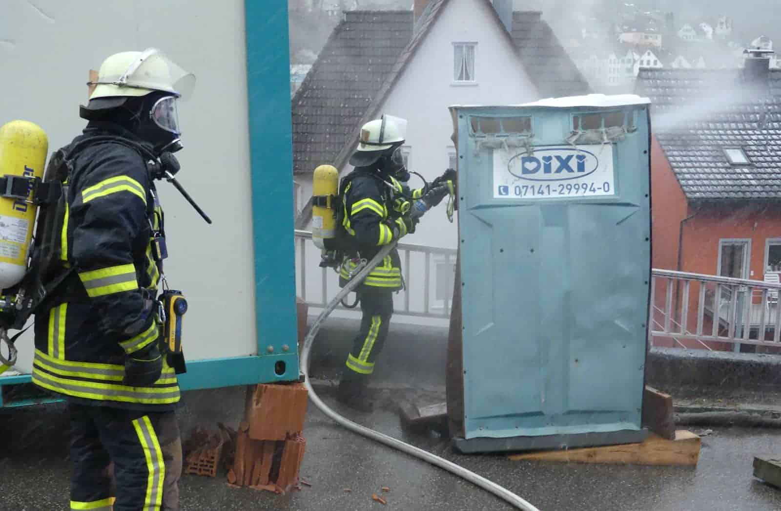 Gegen 16 Uhr musste die Schramberger Talstadfeuerwehr ausrücken. Brandalarm in der Weihergasse. An einer Baustelle unterhalb der Zufahrt zu Gut Berneck brannte ein Dixiklo. Ein daneben stehener Baucontainer blieb unbeschädigt. Andere Gebäude waren nicht gefährdet.