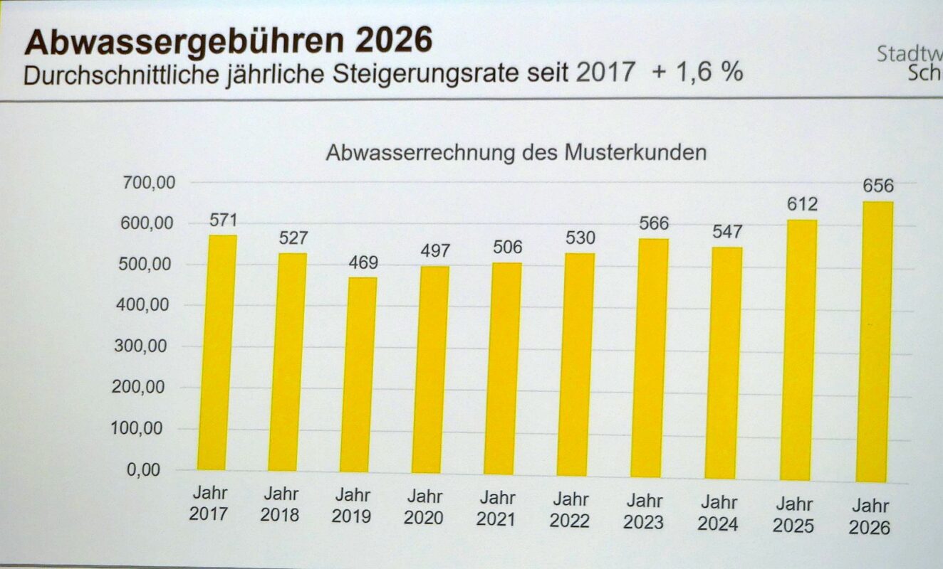 Schramberg. Stadtwerkeleiter Peter Kälble hat im Ausschuss Umwelt und Technik (AUT) berichtet, dass Aufwendungen von 5,4 Millionen Euro im Jahr 2022 bis 2026 auf 6,3 Millionen Euro steigen, das seien durchschnittlich 4,2 Prozent pro Jahr mehr.