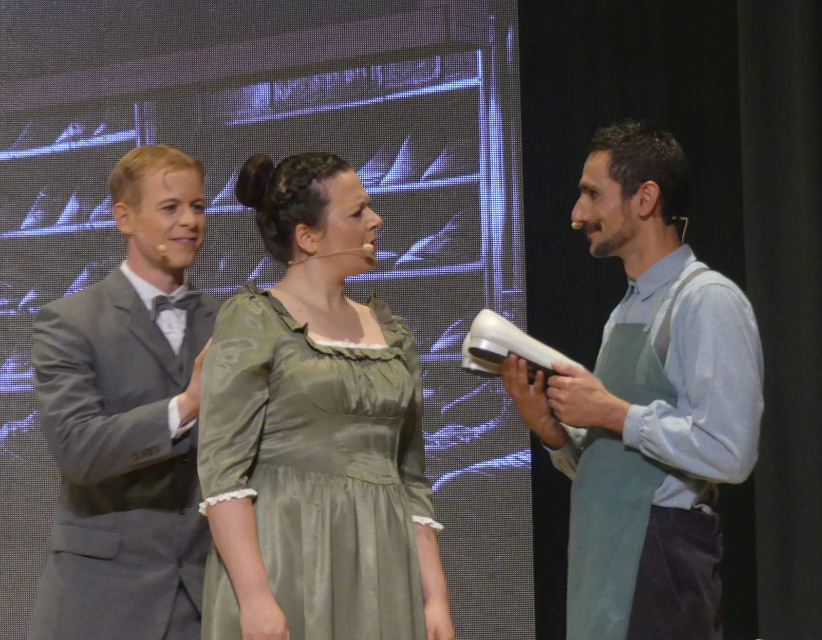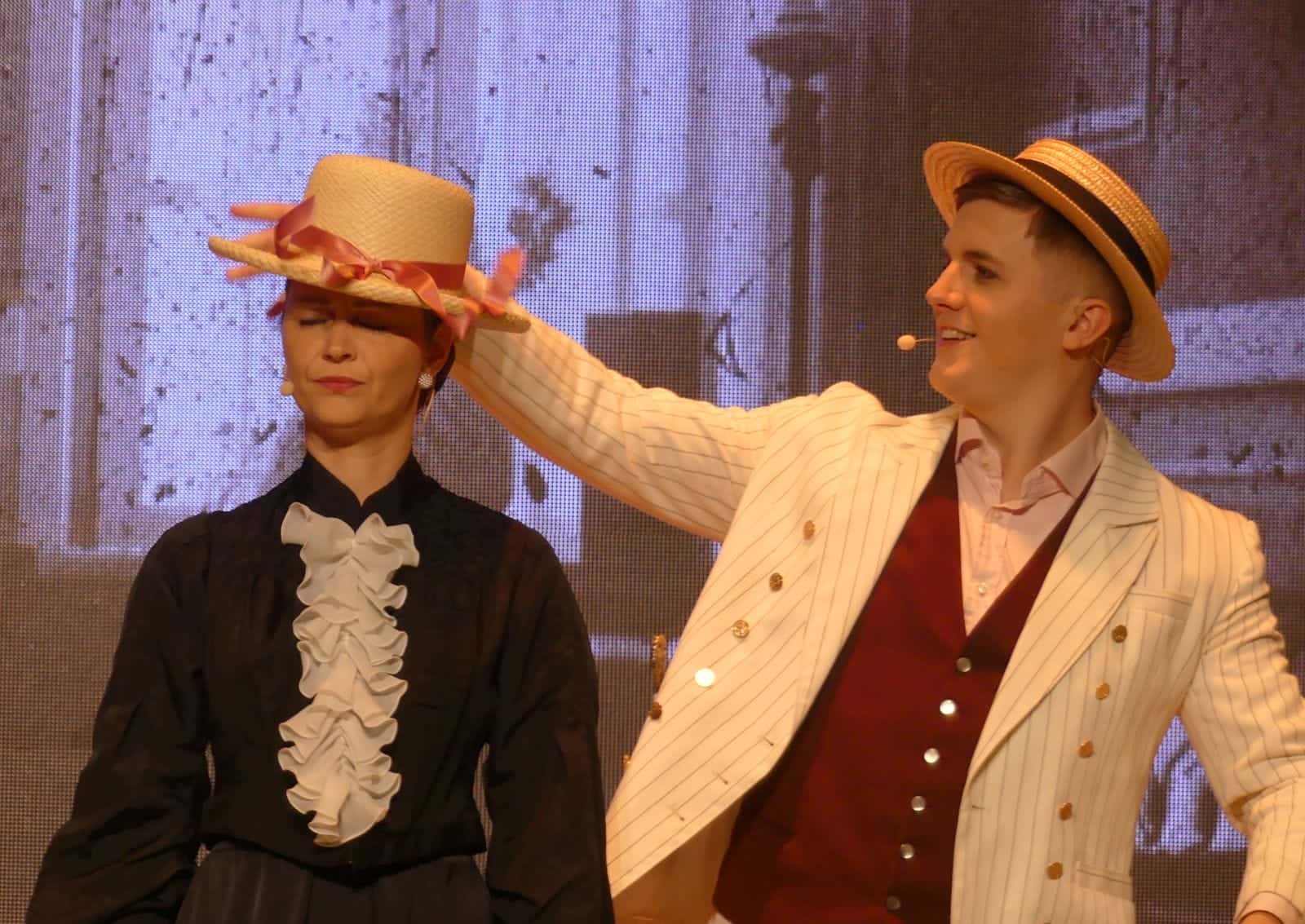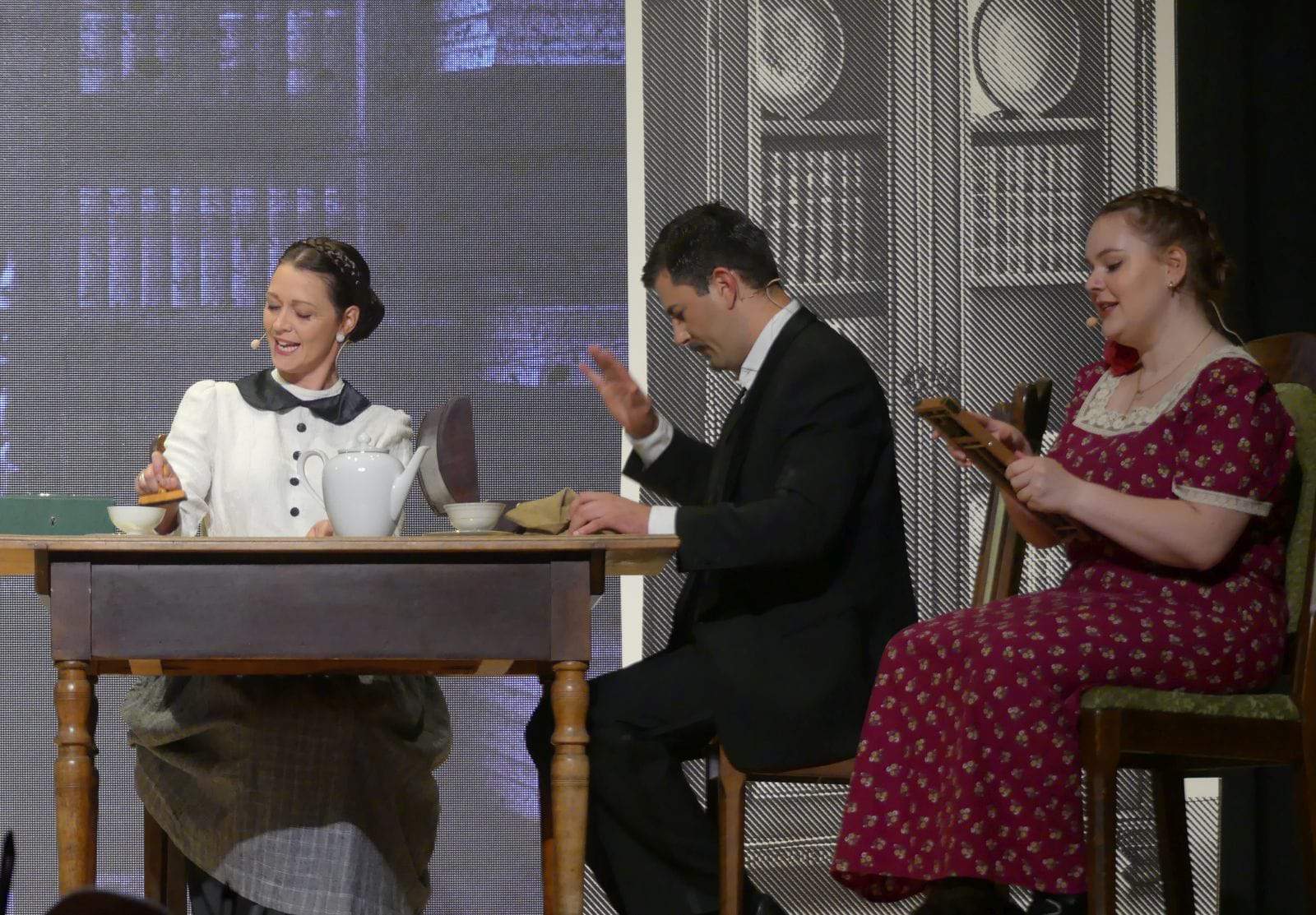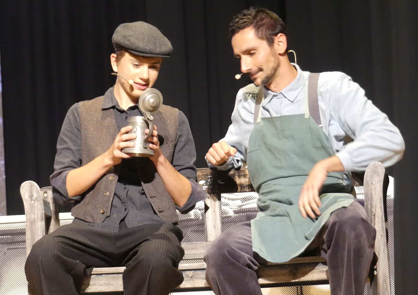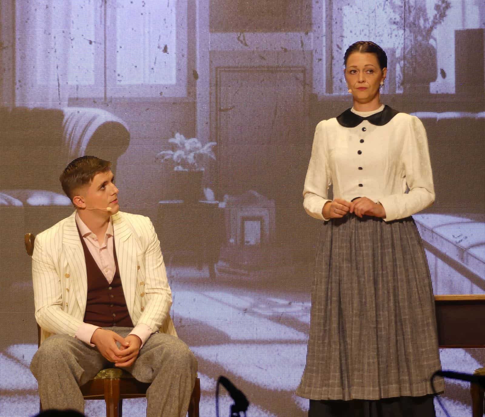 Dabei flocht er auch immer wieder bekannte Musical-Melodien ein. Aus der Westside-Story klang beispielsweise „I want to be in America“ an, als Luise ihrem Sohn Arthur eine Schiffsfahrkarte nach Amerika überreicht.