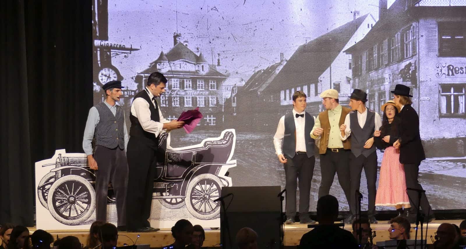 Der Bärensaal hat am Freitagabend eine außergewöhnliche Premiere erlebt: Ein eigens für Schramberg geschriebenes Musical, zwei Schramberger Familien im Mittelpunkt, komponiert von einem Schramberger, und gespielt von einer großen Schar von Schrambergerinnen und Schrambergern: „Junghans- Das Musical.“