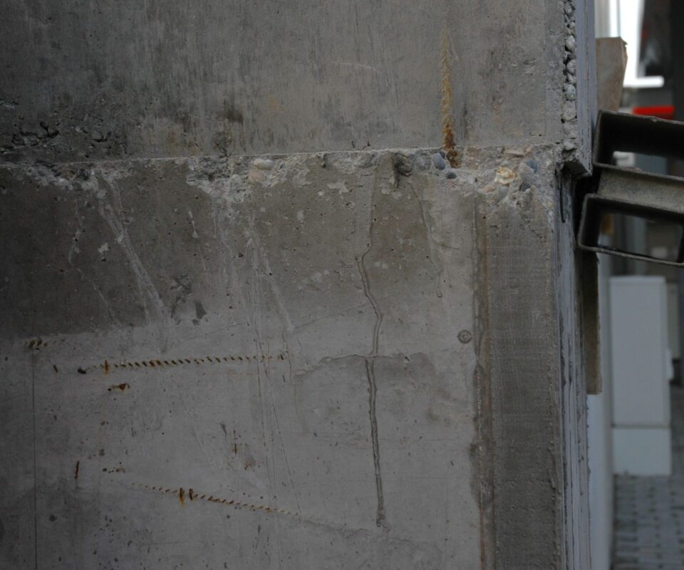 An mehreren Stellen waren gar die Armierungseisen sichtbar, wie die NRWZ im Dezember 2009 berichtete. „Das ist gar nicht gut“, zitierte die NRWZ damals einen der Statiker, denn so können Rostfraß und Feuchtigkeit in den Pfeiler gelangen. Vorschriftsmäßig müssten mehrere Zentimeter Beton das Armierungseisen von der Außenwand trennen, bestätigte die Architektin damals.