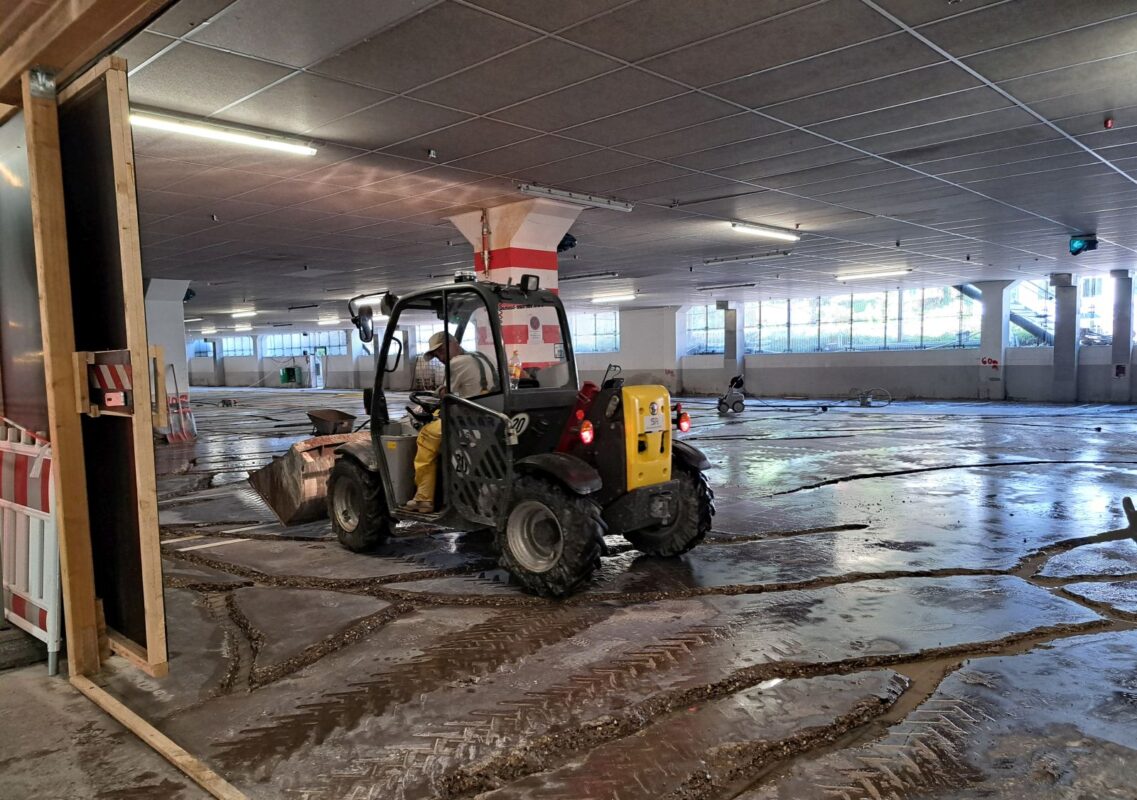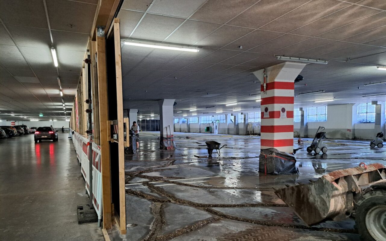 Nun also sind die Bauhandwerker zu Gange. Etwa ein Drittel der Parkfläche ist mit einer Wand vom übrigen Parkbereich abgetrennt. Kaufland Sprecherin Andrea Kübler erklärt auf Nachfrage der NRWZ, es würden im Parkhaus die Betonsäulen saniert und die Fahrbahn neu beschichtet.