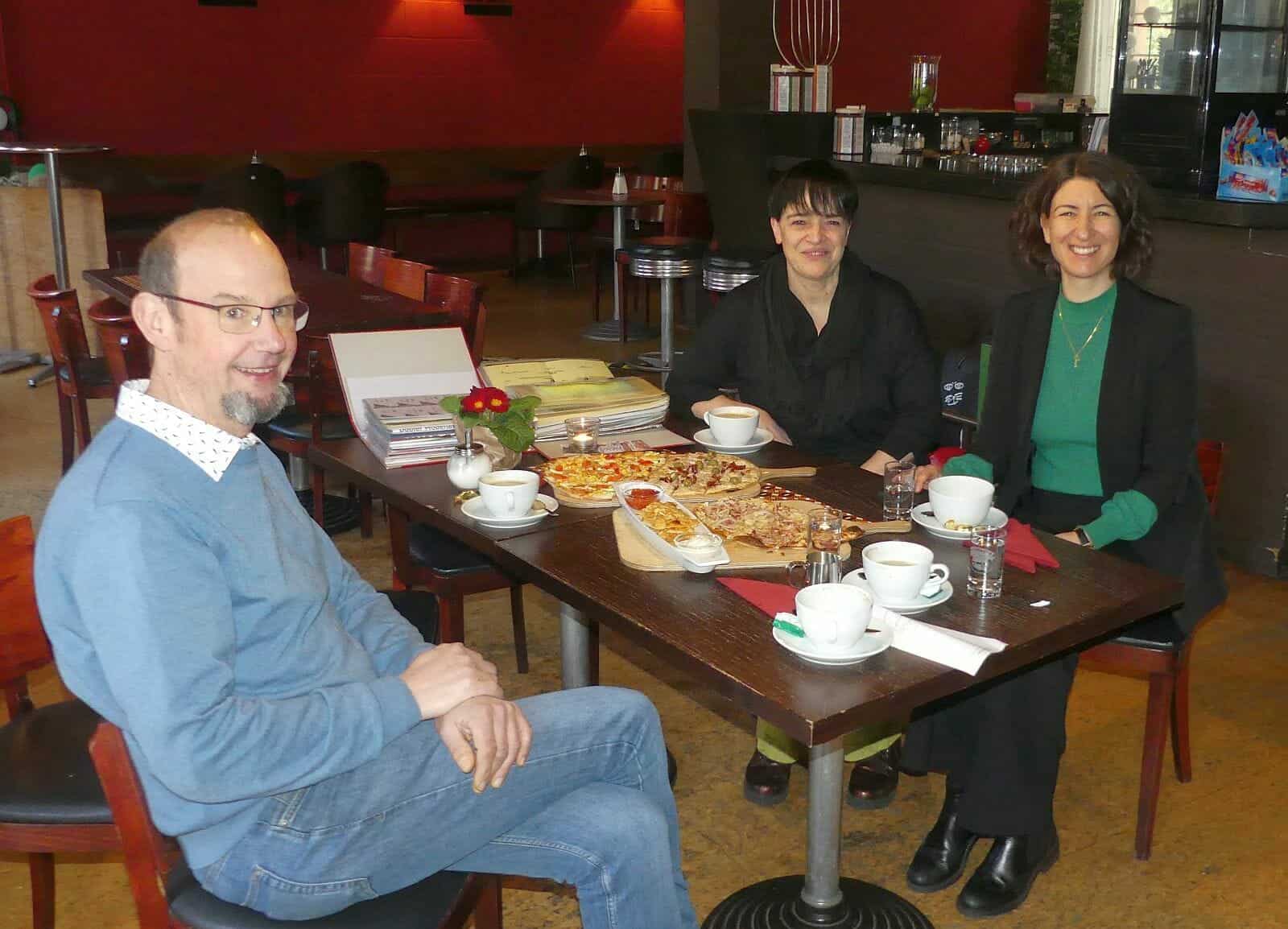 Die Flammkuchen sind vertilgt und OB Eisenlohr lobt: „Wir freuen uns über eine so kreative Gastronomin.“ Moosmann Bereiche die Stadt mit ihren vielen Ideen. Auch als Vorsitzende des Handels- und Gewerbevereins sprühe sie vor Tatkraft und Ideenreichtum. Wirtschaftsförderer Heinzelmann hebt ihren Party- und Cateringservice hervor, der gern angenommen werde.