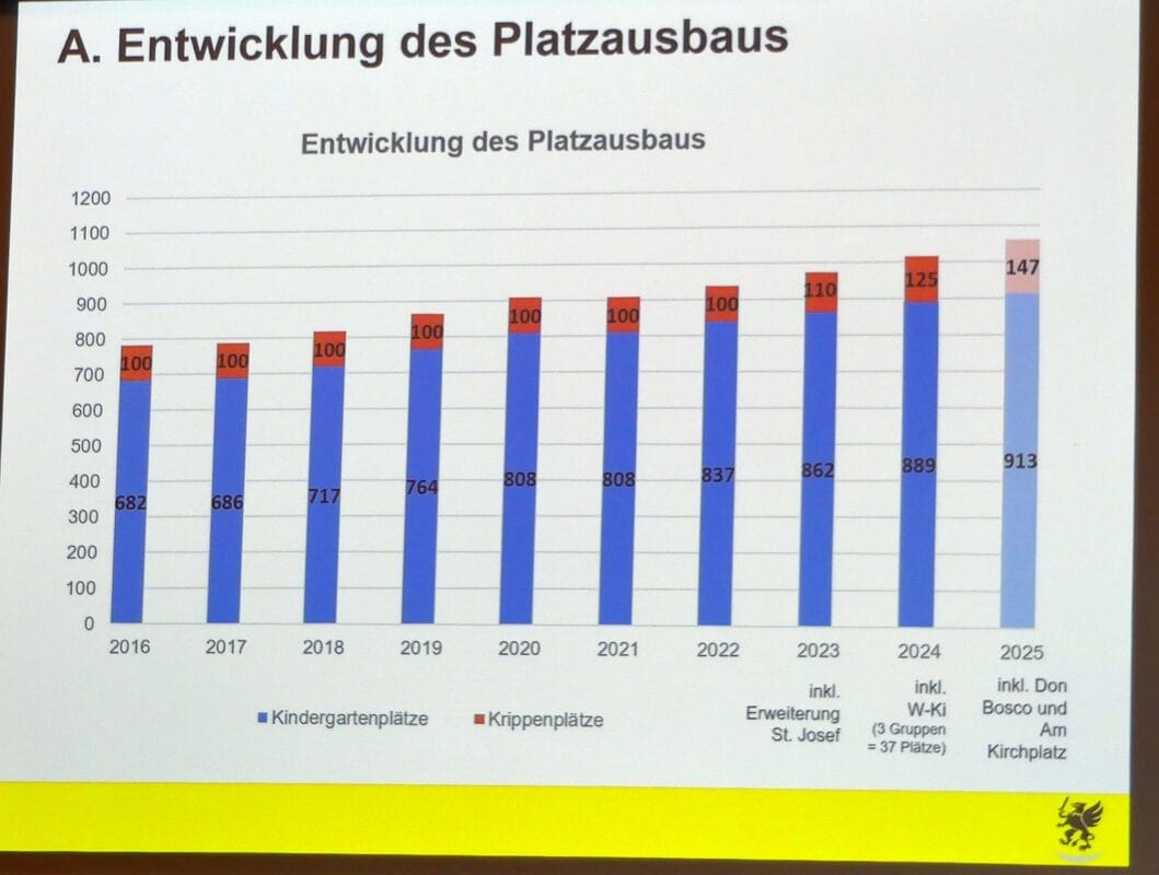 Trotz dieser Unsicherheiten geht die Verwaltung von leicht sinkenden Zahlen in den kommenden Jahren aus. Wegen der wirtschaftlichen Lage gehe die Nachfrage nach U3 Plätzen „drastisch zurück“, hat Flaig beobachtet. „Das ist normal, wenn die Wirtschaft schlecht läuft.“