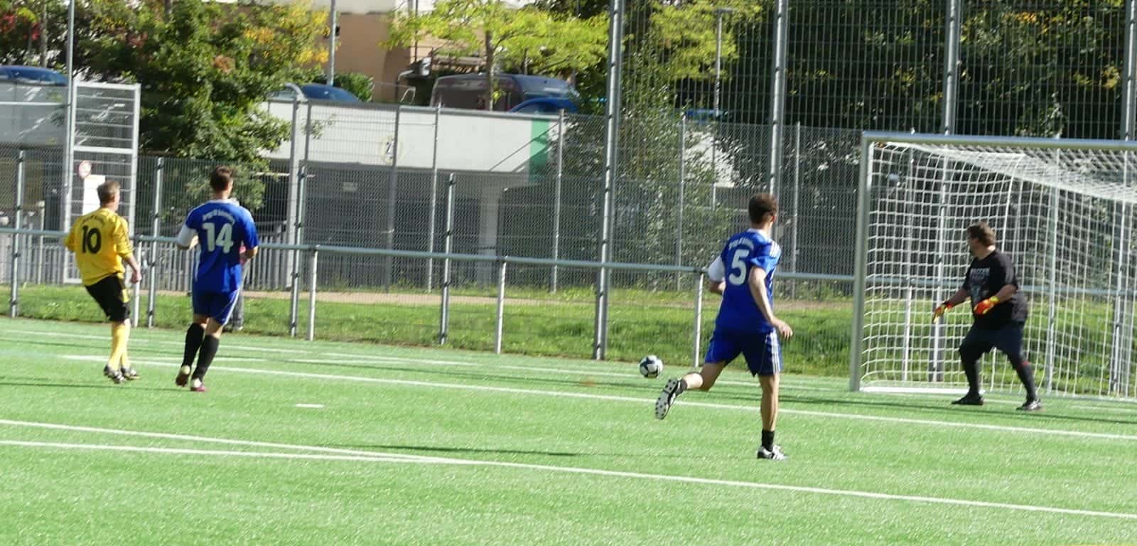 Und dann rollte der Ball. Die in gelben Trikots aufgelaufenen All Stars schossen gleich in den ersten Minuten drei Tore, die Hilmar Bühler auch mit großer Körperfläche nicht verhindern konnte.