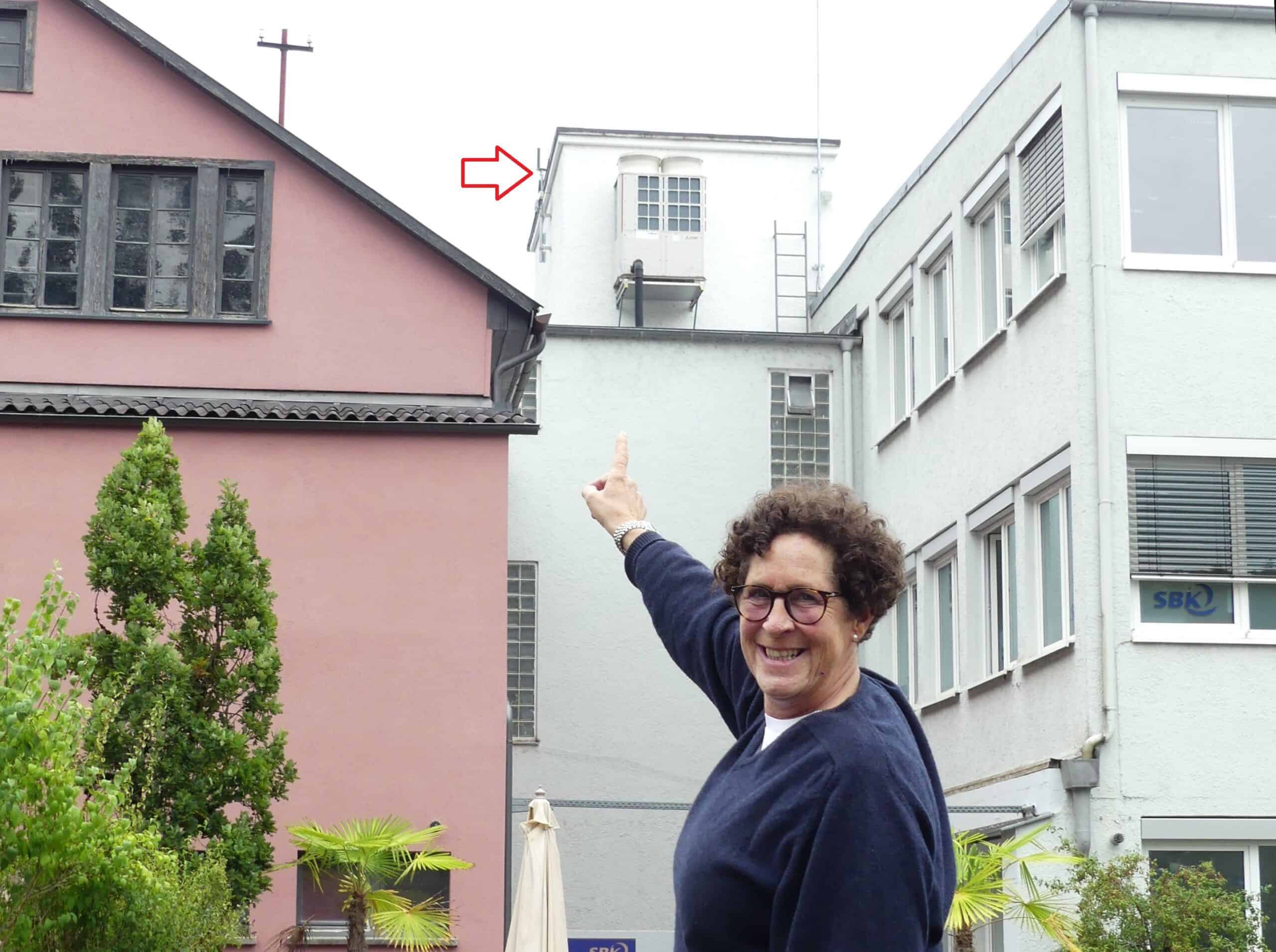Daraufhin erklärte sich Michael Melvin bereit, ein Thermometer, einen Regen- und einen Windmesser auf der Majolika zu installieren. Nach ein paar Tagen kam alles Erforderliche bei Melvins an. In seinem Garten wenige Meter von der Majolika entfernt hat Michael Melvin die Temperaturmessanlage aufgestellt. Am höchsten Punkt der ehemaligen Majolikafabrik brauchte es ein paar Bohrlöcher und Dübel und schon waren die Wind- und Regenmesser befestigt. „Wir haben sie auch geerdet , nicht dass mal der Blitz einschlägt“, so Annette Melvin.