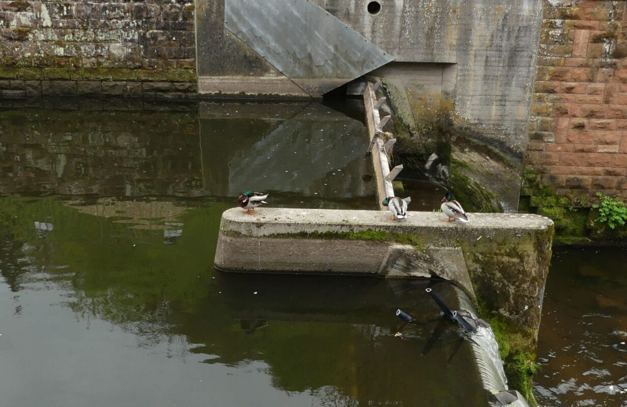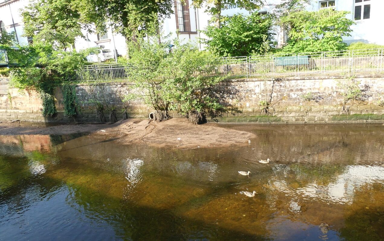 Update Freitag, 4. Juli: Die Enten sind zurück, das Wehr ist repariert und der Wasserspiegel wieder etwas angestiegen.