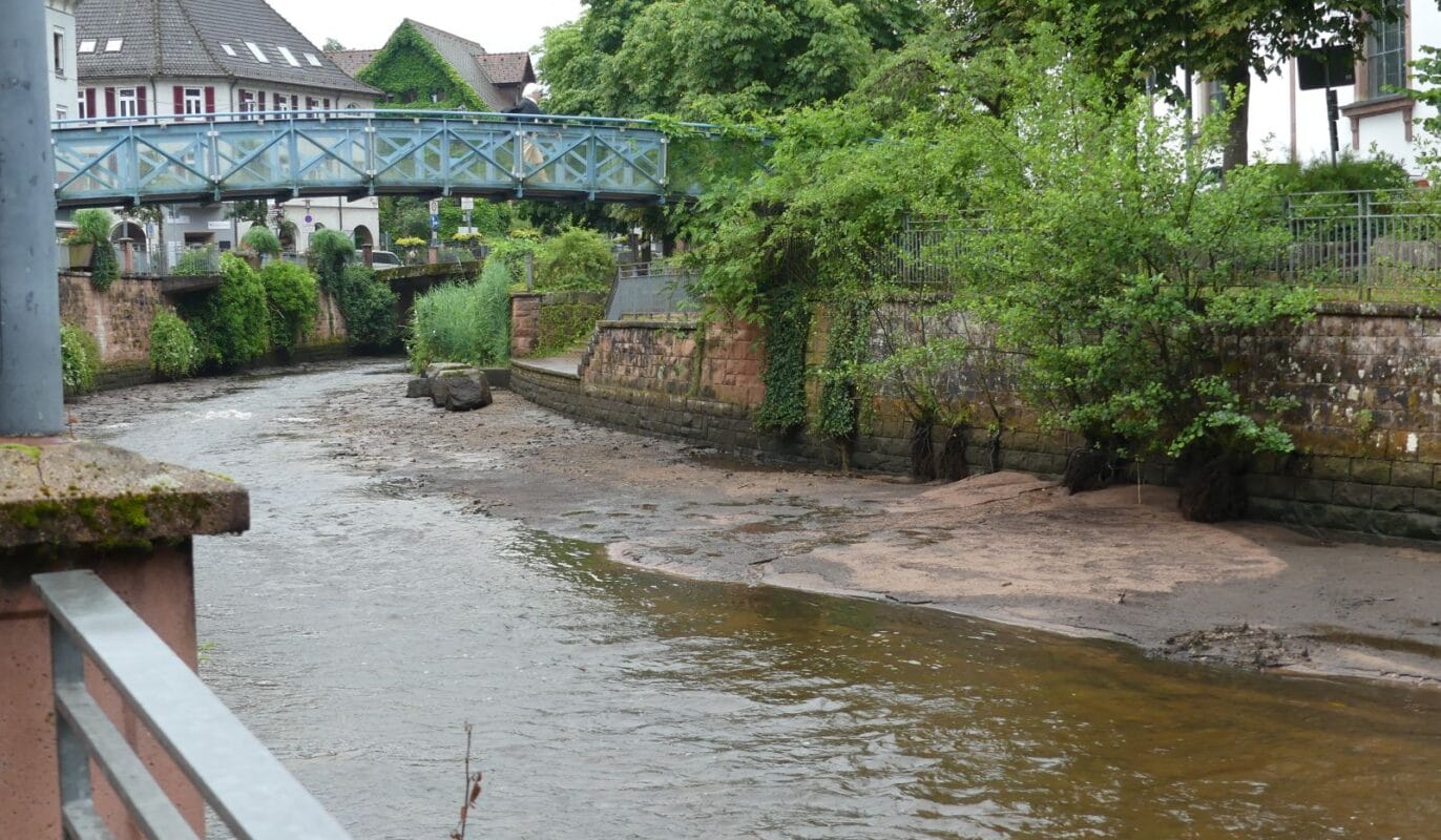 Die Enten auf dem „Teich“ vor der St. Mariakirche mussten sich heute Morgen ein neues Plätzle suchen. Mitarbeiter eines Glattener Elektrobetriebs hatten das Wehr komplett heruntergefahren. Im Auftrag der Stadt erneuern sie die Steuerungstechnik.