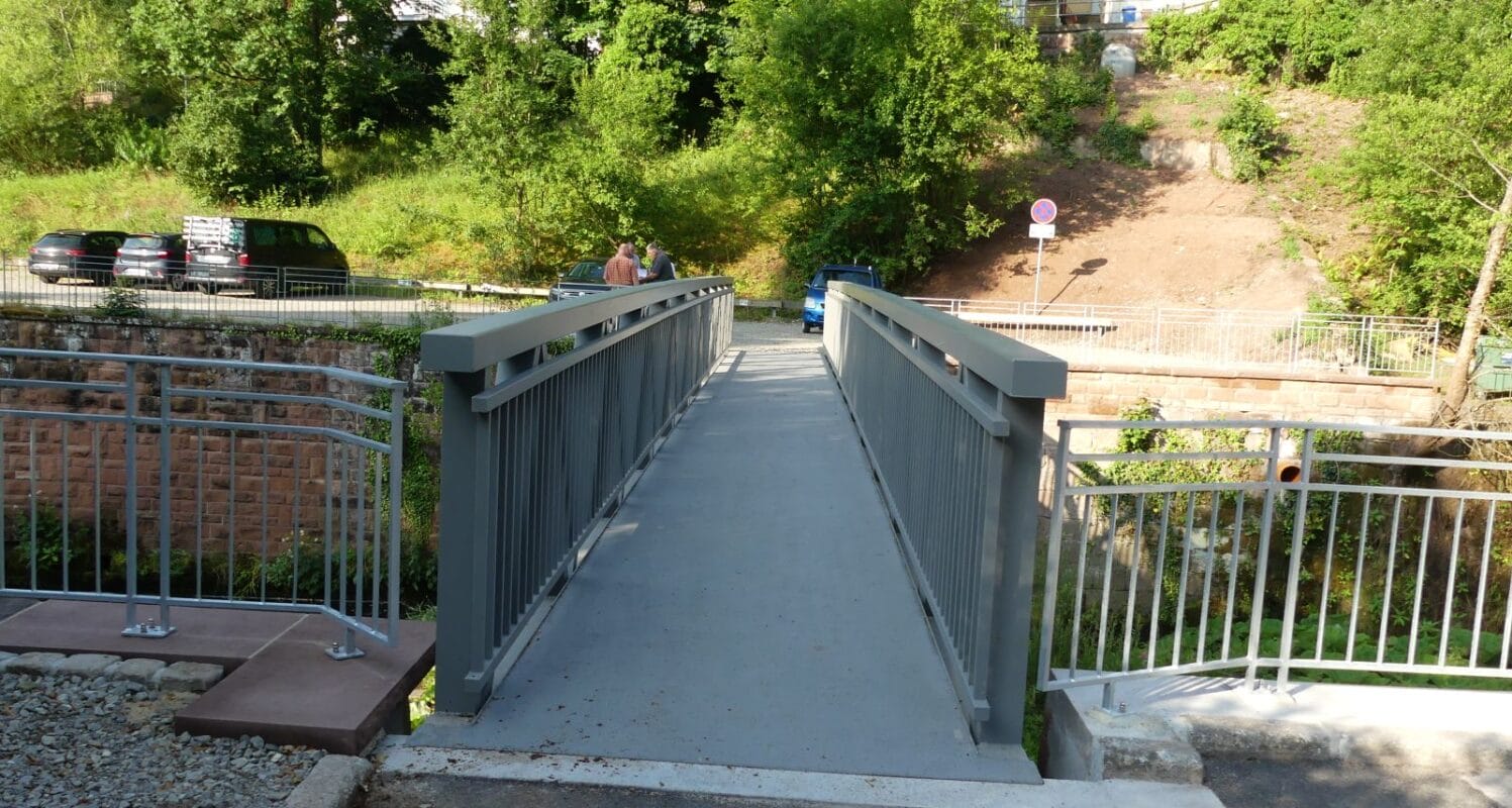 Schramberg. Und die Schlechte? Wenige Schritte vom frisch reparierten Majolikawehr hat Ginter am Freitag mit Kollegen von den Baufirmen und der Verwaltung den neuen Alusteg über die Schiltach abgenommen.