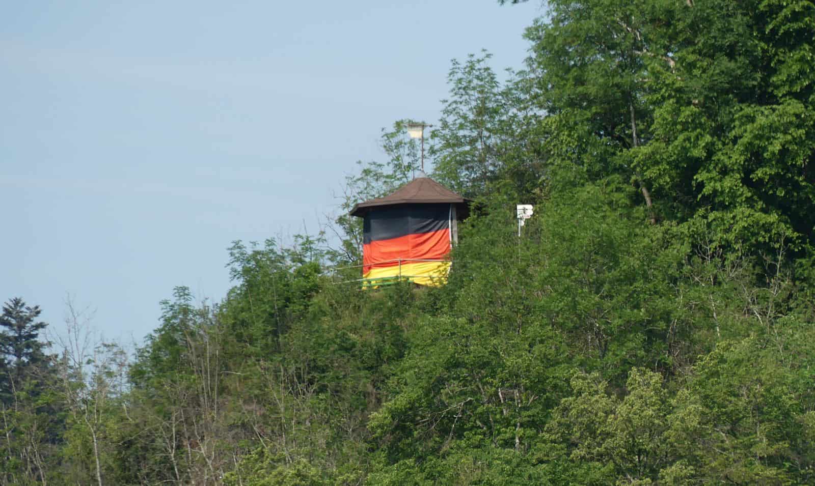 Vor wenigen Tagen hing am Schramberger Aussichtshäusle einmal mehr eine riesige Deutschlandfahne. Die Stadverwaltung hat sie auch dieses Mal abhängen lassen. Der Grund: Die Fahne am Aussichtshäusle hat offensichtlich nichts mit der derzeit stattfindenen Fußball-Europameisterschaft zu tun, sondern ist Teil einer rechtsradikalen Kampagne – wie schon im vergangenen Jahr. Zu einem Zeitungsartikel in der Lokalzeitung schreibt nun der Sprecher der Stadt Schramberg Hannes Herrmann: