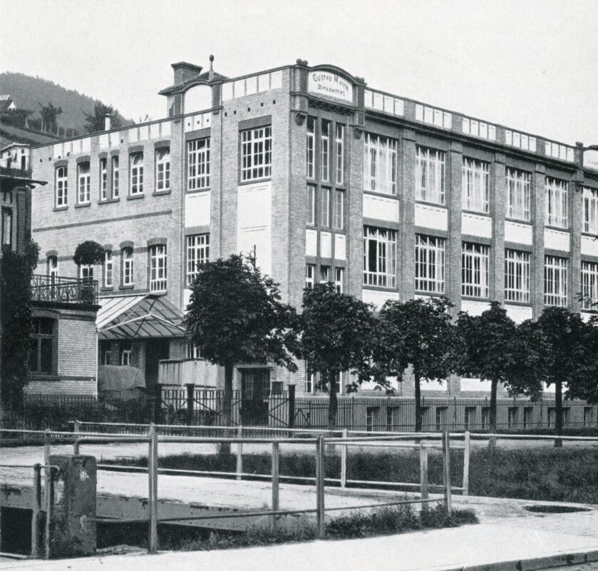 „Das Fabrikgebäude der Firma Gustav Maier wurde 1908 bis1909 als Ersatzneubau nach einem Brand geplant durch den Architekten Heinrich Maas in Obertürkheim für die 1893 gegründete Papierwaren- und Kartonagenfabrik Gustav Maier.“