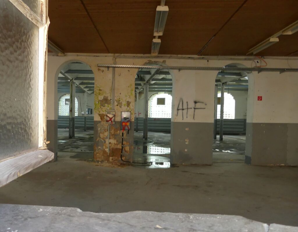 Seit dem Sommer hat der Vandalismus rings um das Gebäude aber auch im Inneren massiv zugenommen. Seit Monaten brennt in einem Raum Tag und Nacht das Licht. Graffiti an der Seite zum Seilerwegle nehmen zu. Ein Hakenkreuz „ziert“ seit dem Sommer die Wand. Unbekannte haben Glasbausteine und Fenster eingeworfen. Im Innern sammelt sich Müll, das Wasser dringt zum Dach oder durch zerbrochene Fenster ein. Der Zaun zum Gelände ist löchrig wie ein Schweizer Käse.