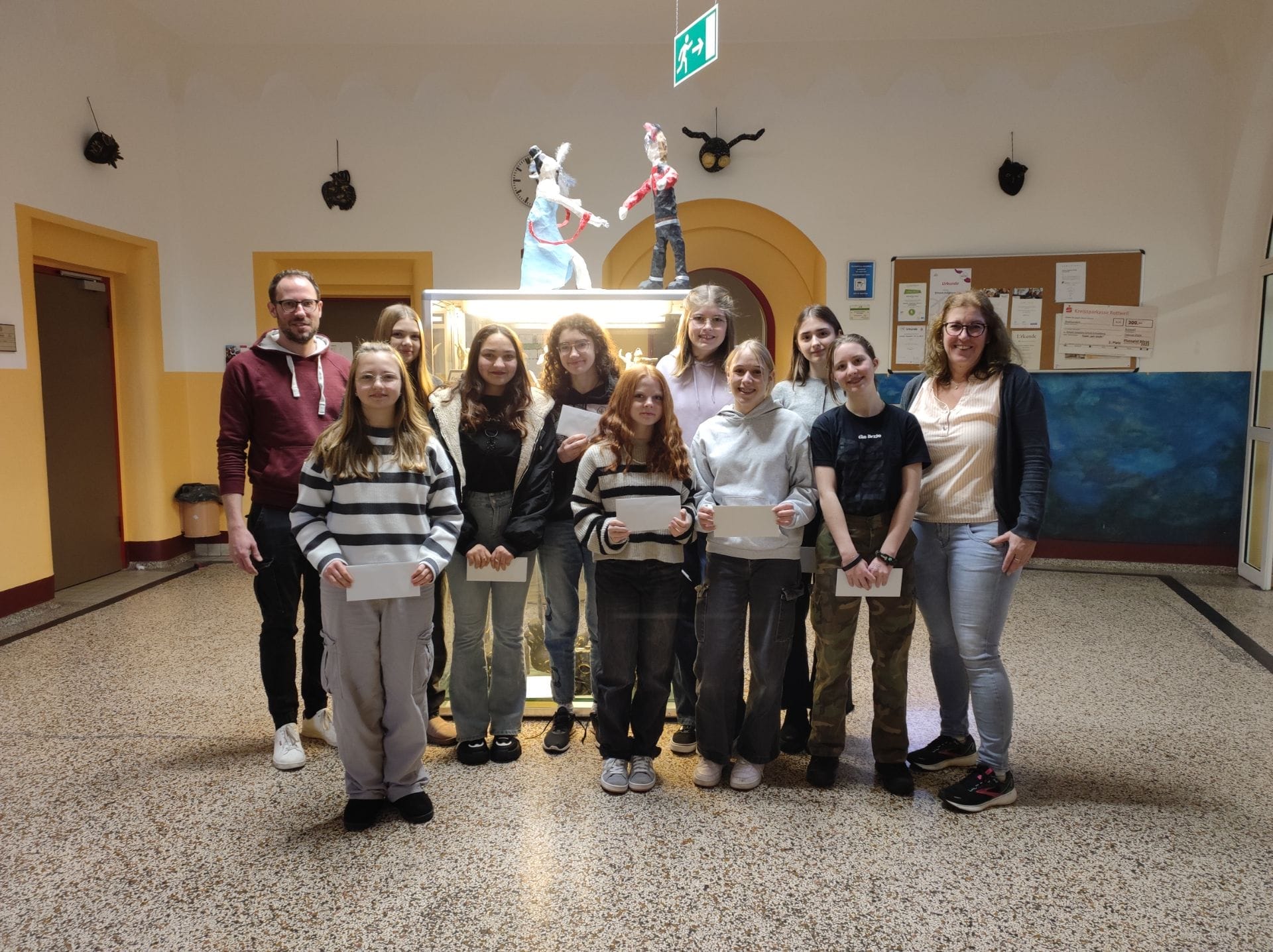 Deshalb ist es schon seit geraumer Zeit Tradition, dass besonders gelungene und ideenreiche Ergebnisse mit einem kleinen Preis belohnt werden. Die folgenden Schüler freuten sich über einen Eisgutschein im Café Venezia in Schramberg: Delia Chipernea (9a), Marie Hils, Luisa Riedel, Sofia Enasel (9b), Lena Broghammer, Natalia Kandzia (9c) und Laura Kunz, Finja Heitzmann, Navina Hilser (9e).