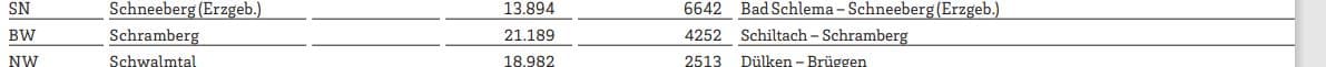 Auch Schramberg. Zwischen Schneeberg und Schwalmtal. Auf Seite 26/27 wird für die Streckennummer 4252 Schiltach-Schramberg in der Rubrik „Reaktiv. sinnvoll?“ vermerkt: nein. Unter „Bemerkungen“ stellt der Verband fest: „attraktive Ziele nur auf Umwegen zu erreichen“.