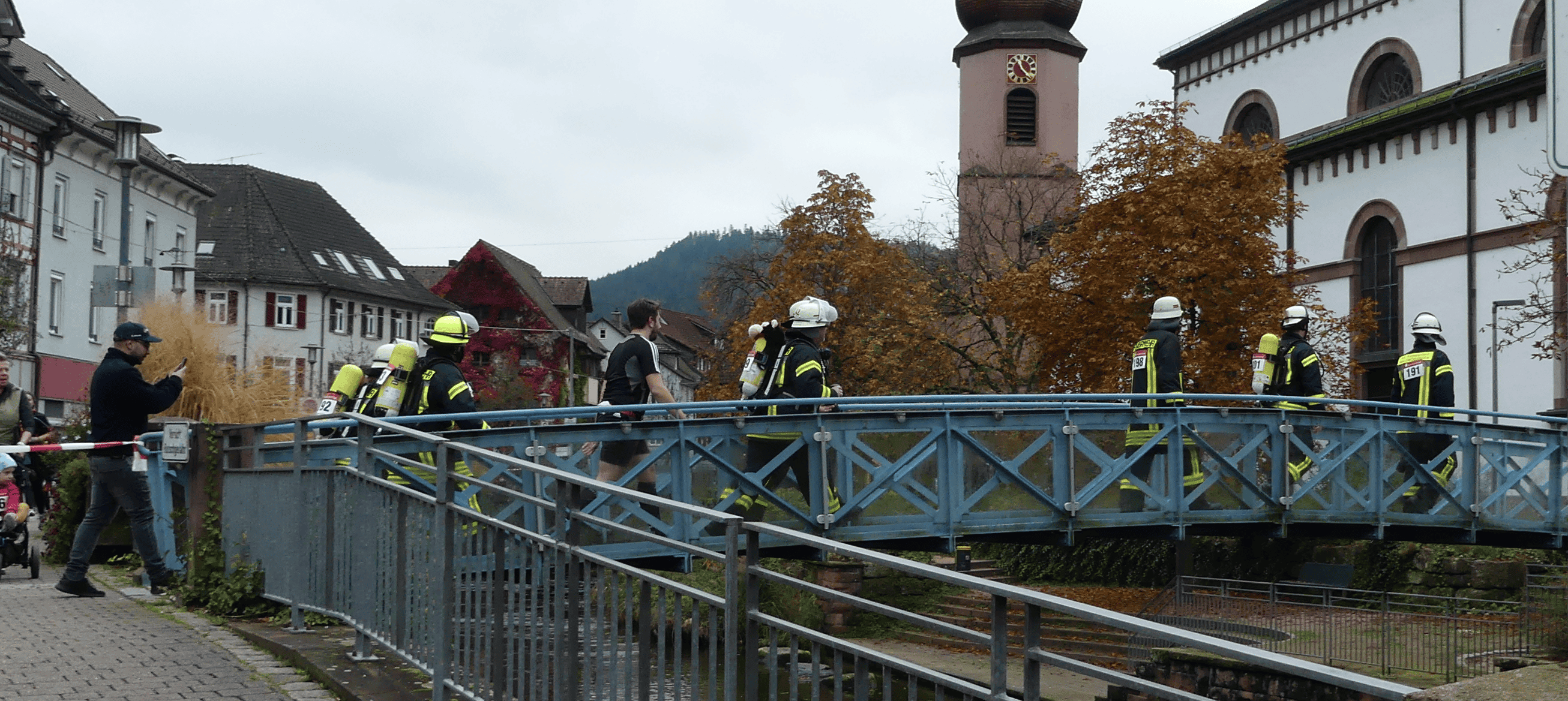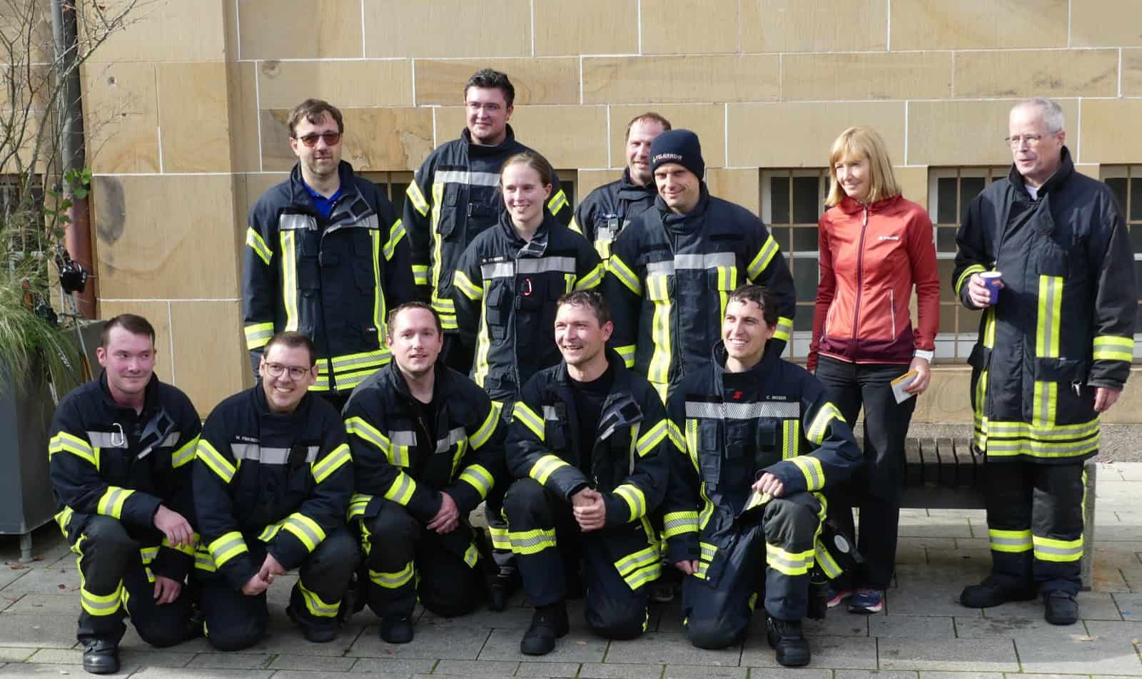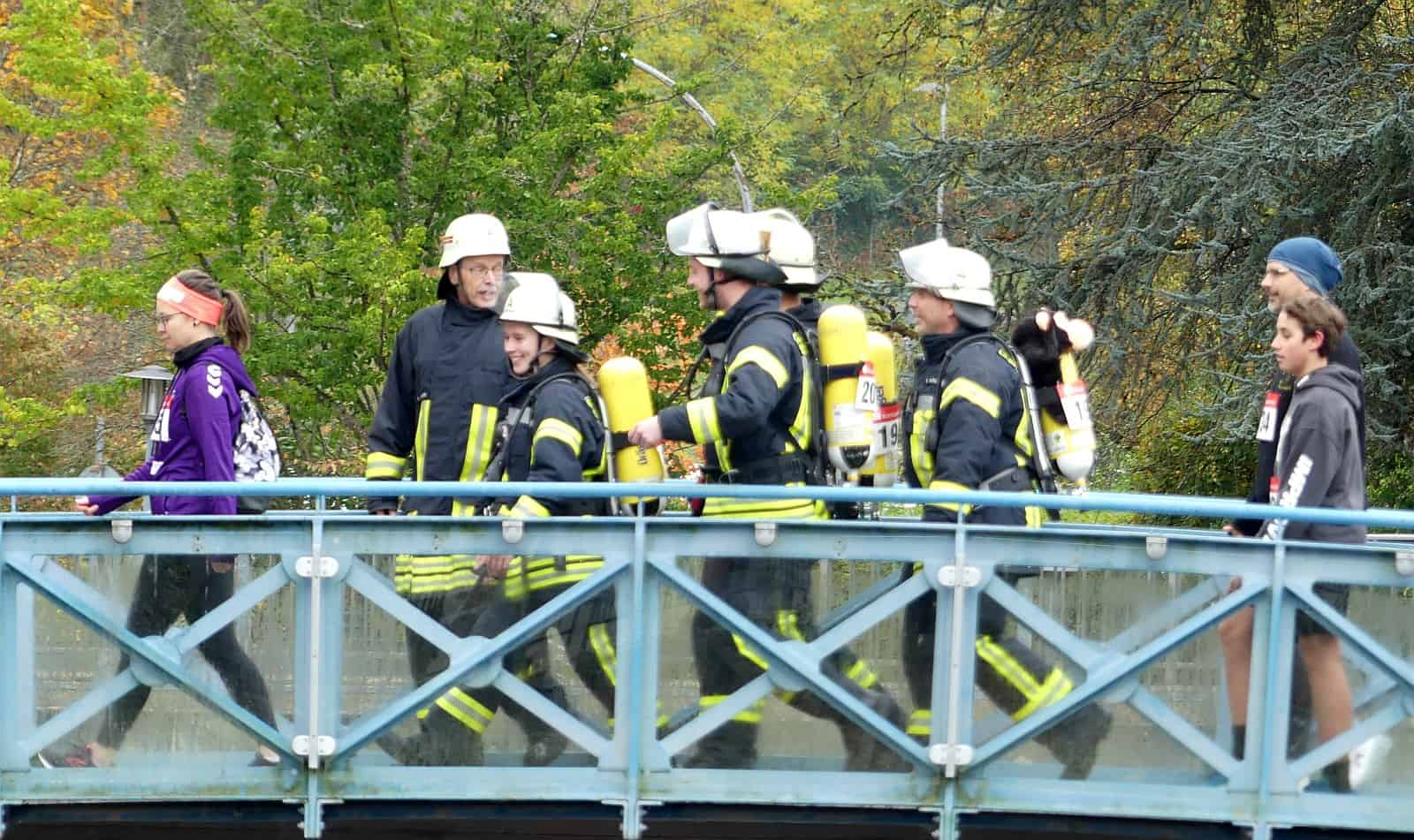 Unter den Läufern ist auch eine Gruppe von der Feuerwehr, die in voller Montur, teilweise sogar mit Atemschutzflasche auf dem Rücken ihre Runden dreht. Auch einige frühere und aktuelle Gemeinderätinnen und Räte sind dabei. Immer, wenn man eine Runde gelaufen war, erhielt man am Ziel ein grünes Gummiband ans Handgelenk.