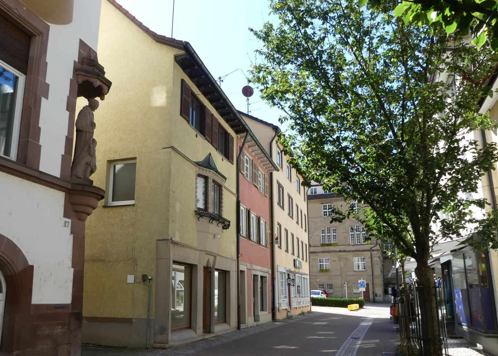 Gleichzeitig möchte die Verwaltung das bestehende Sanierungsgebiet um einige Flächen rings um das Rathaus erweitern, um auch dort Ideen mit Sanierungsmitteln umsetzen zu können. Dabei geht es um die Nachnutzung des Gebäudes Hauptstraße 23 („Mohren“). Das Haus 20, das die Stadt für die neue Brücke kaufen und abbrechen lassen möchte, und die Häuser 19, 21 und 23 in der Marktstraße.