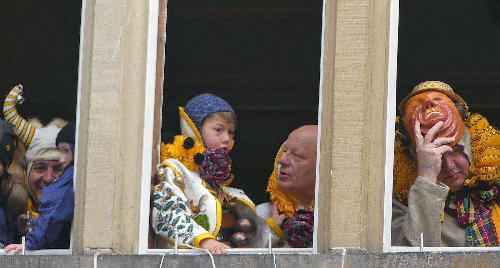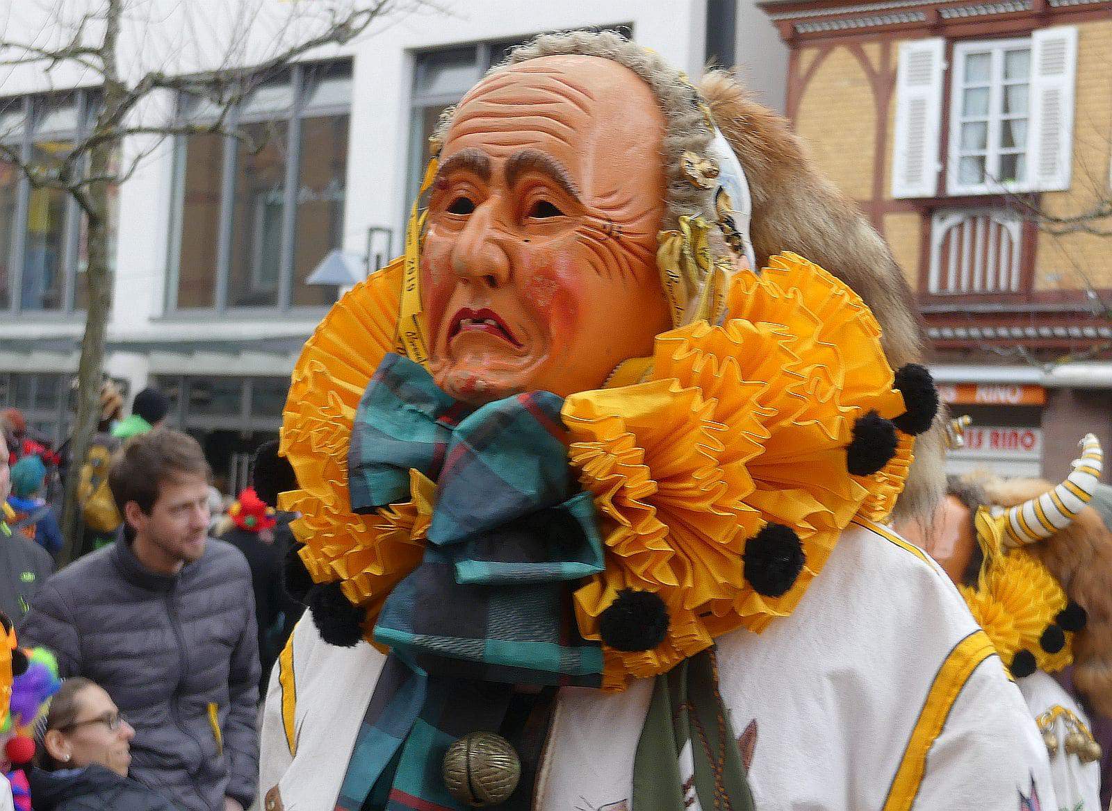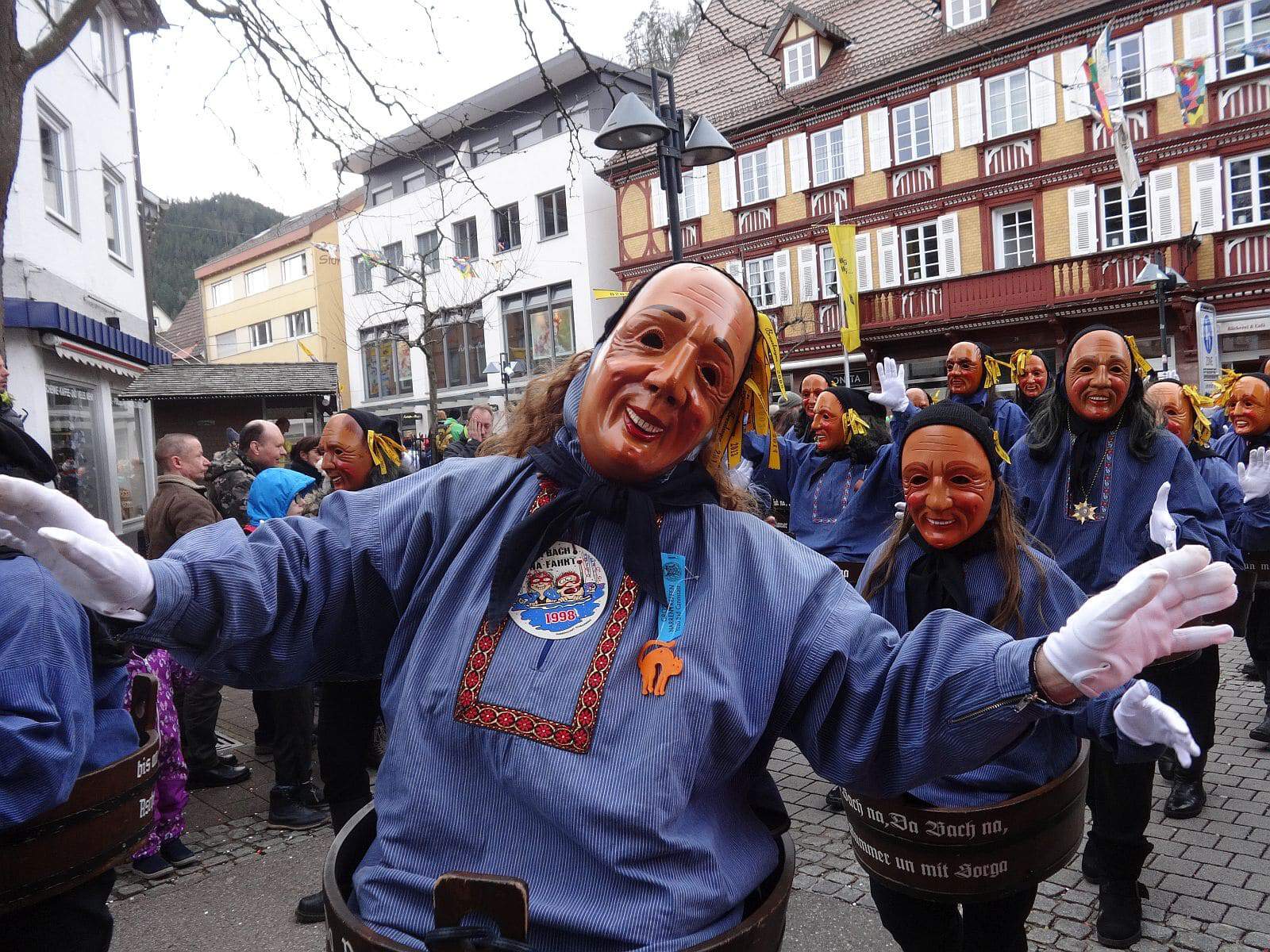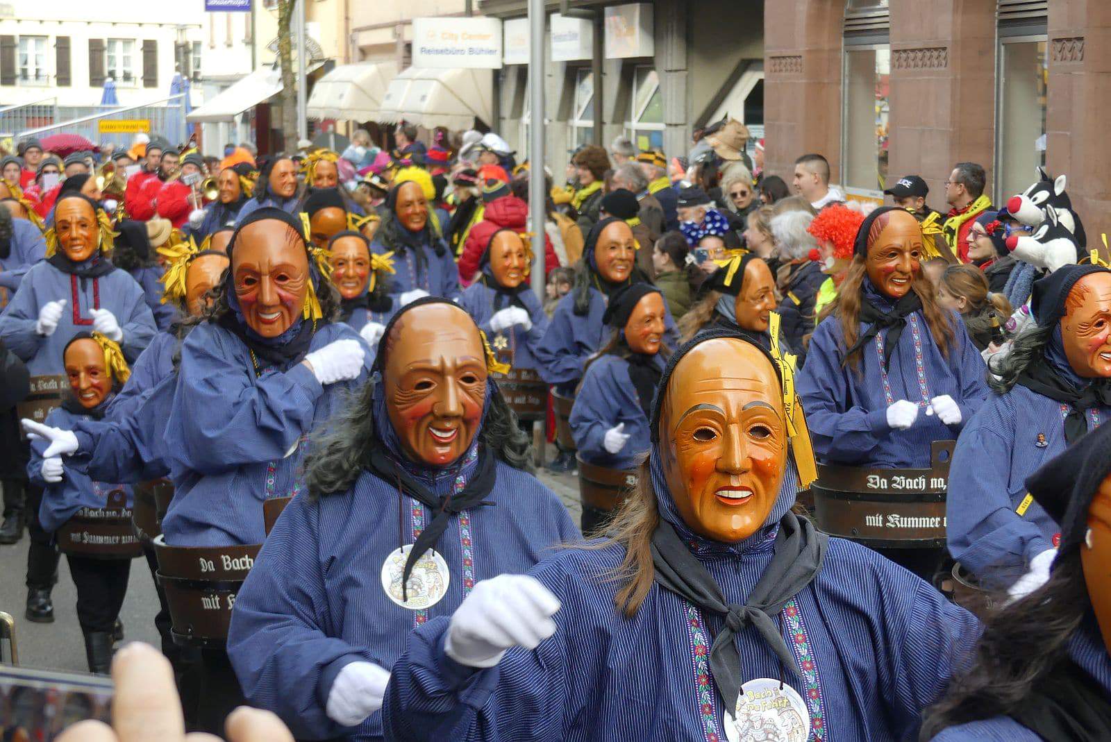 Dann ging es hinaus zum wie immer auf die Straßen mit den bunt kostümierten Zuschauerinnen und Zuschauern, die sangen, sprangen und tanzten, und die Narren um Brezeln, Würstle und Schoklädle anbettelte: „Hoorig, hoorig isch dia Katz…“
