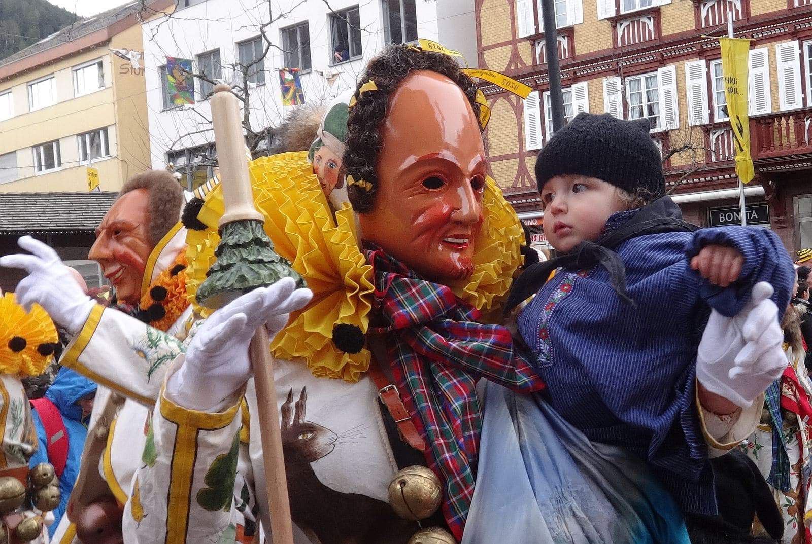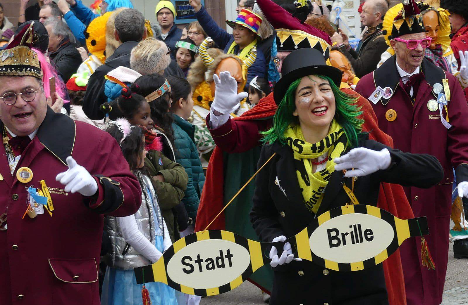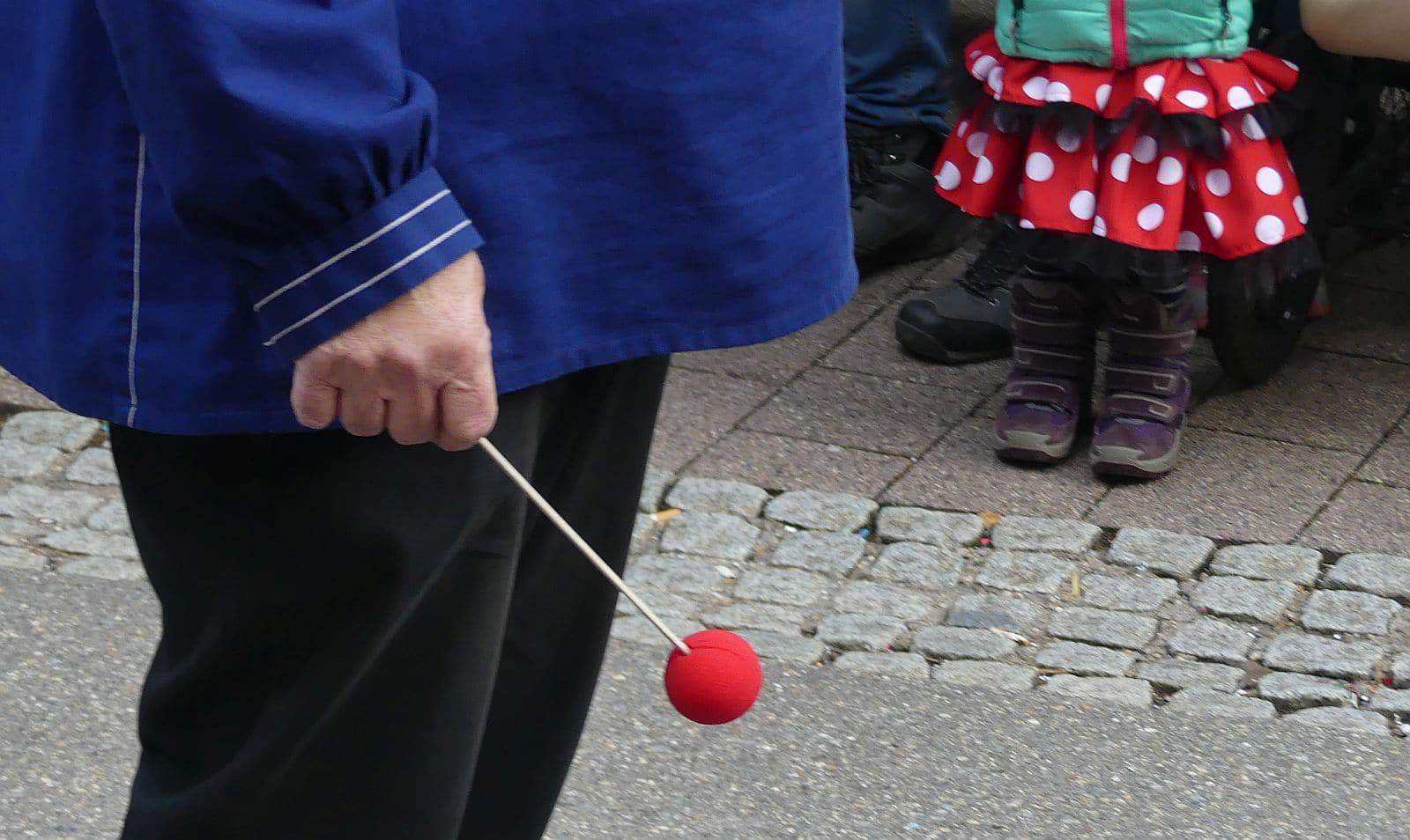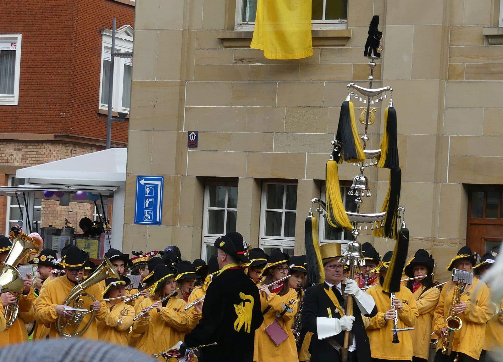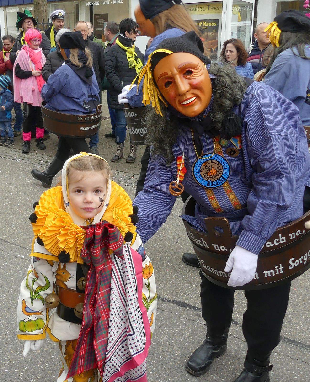 Dann ging es hinaus zum wie immer auf die Straßen mit den bunt kostümierten Zuschauerinnen und Zuschauern, die sangen, sprangen und tanzten, und die Narren um Brezeln, Würstle und Schoklädle anbettelte: „Hoorig, hoorig isch dia Katz…“