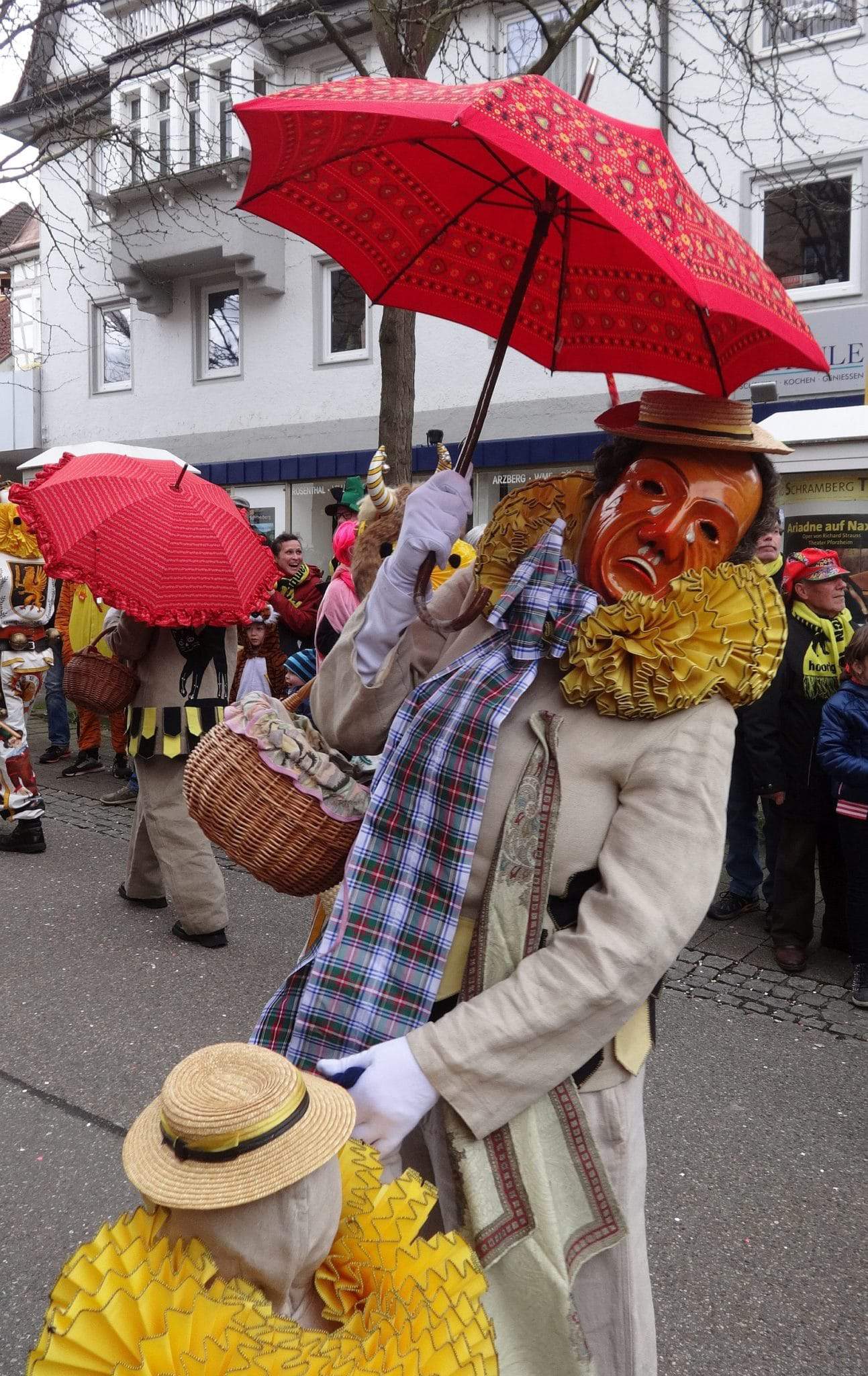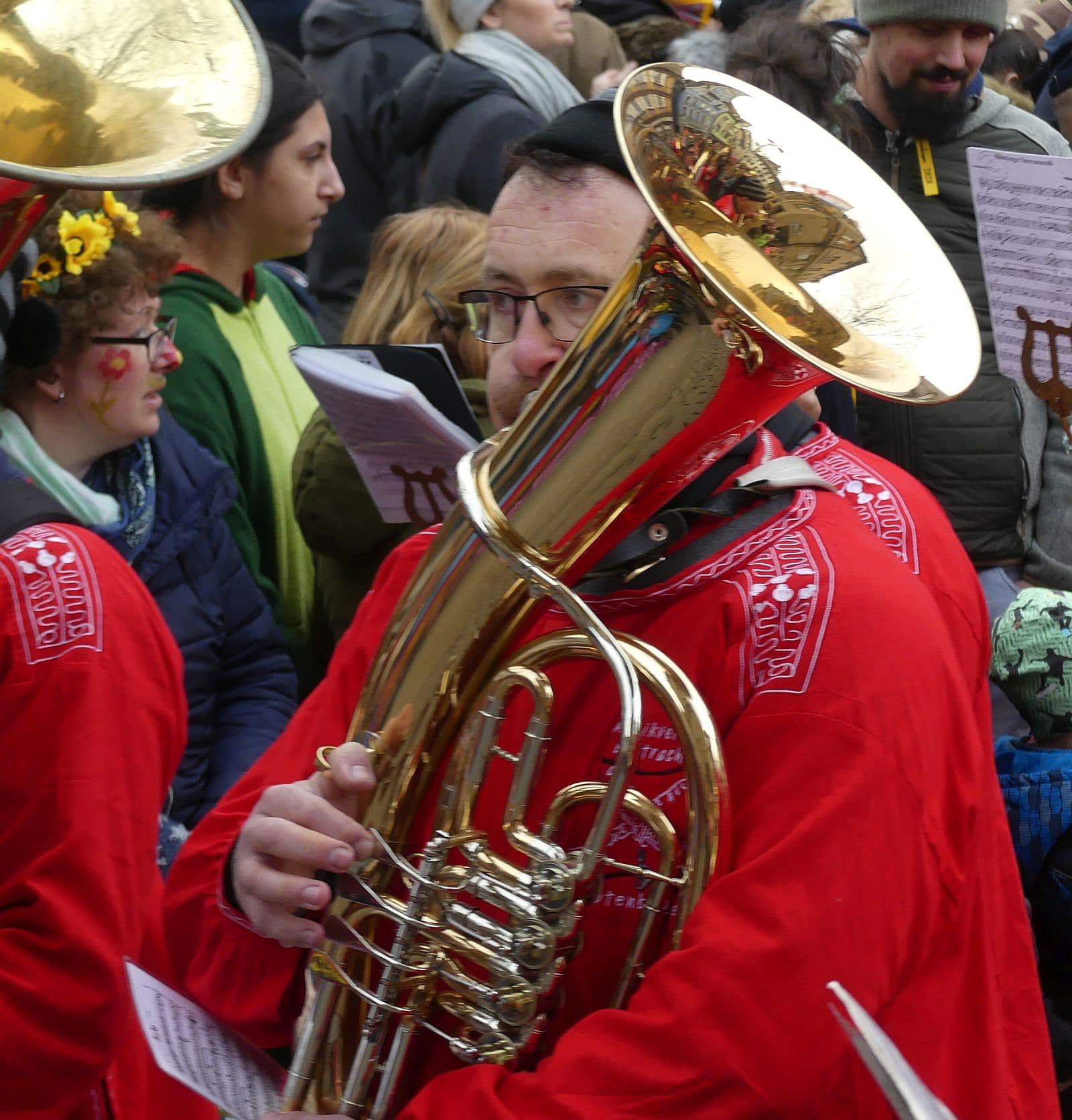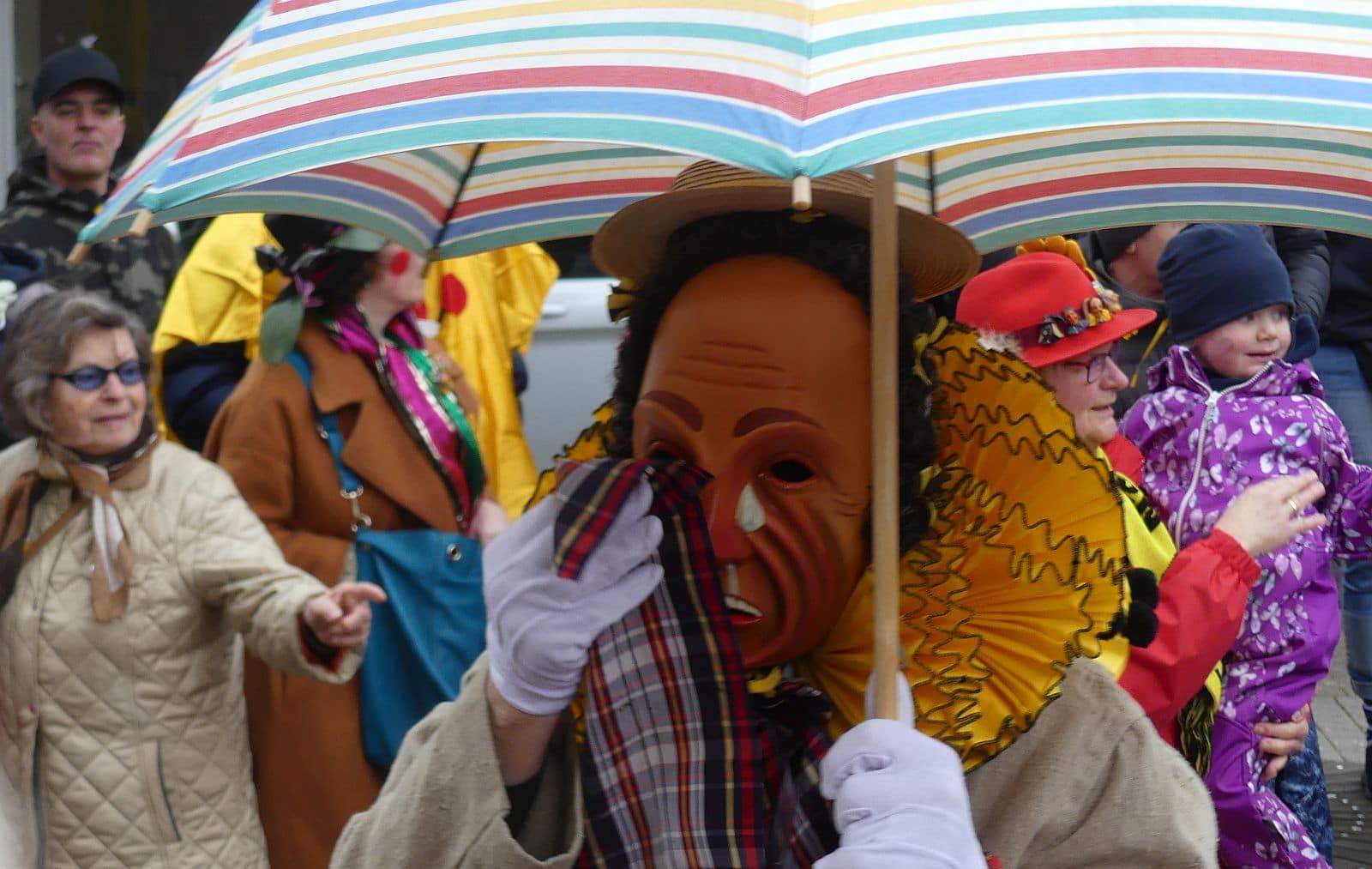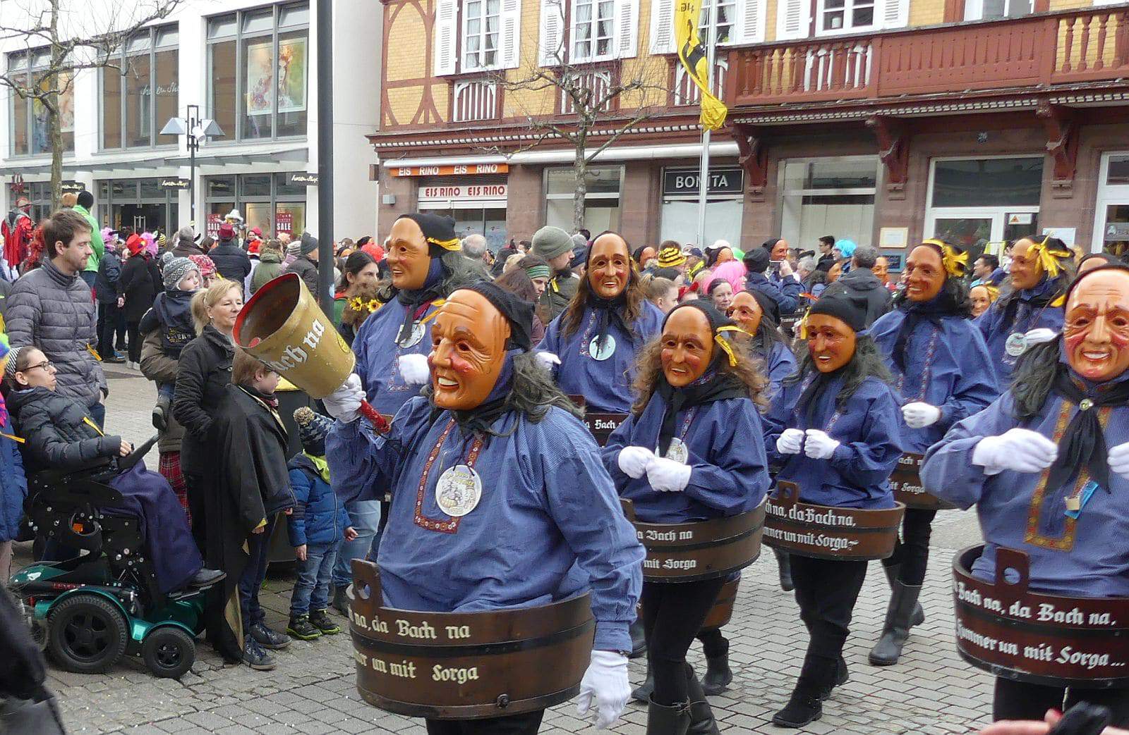 Dann ging es hinaus zum wie immer auf die Straßen mit den bunt kostümierten Zuschauerinnen und Zuschauern, die sangen, sprangen und tanzten, und die Narren um Brezeln, Würstle und Schoklädle anbettelte: „Hoorig, hoorig isch dia Katz…“