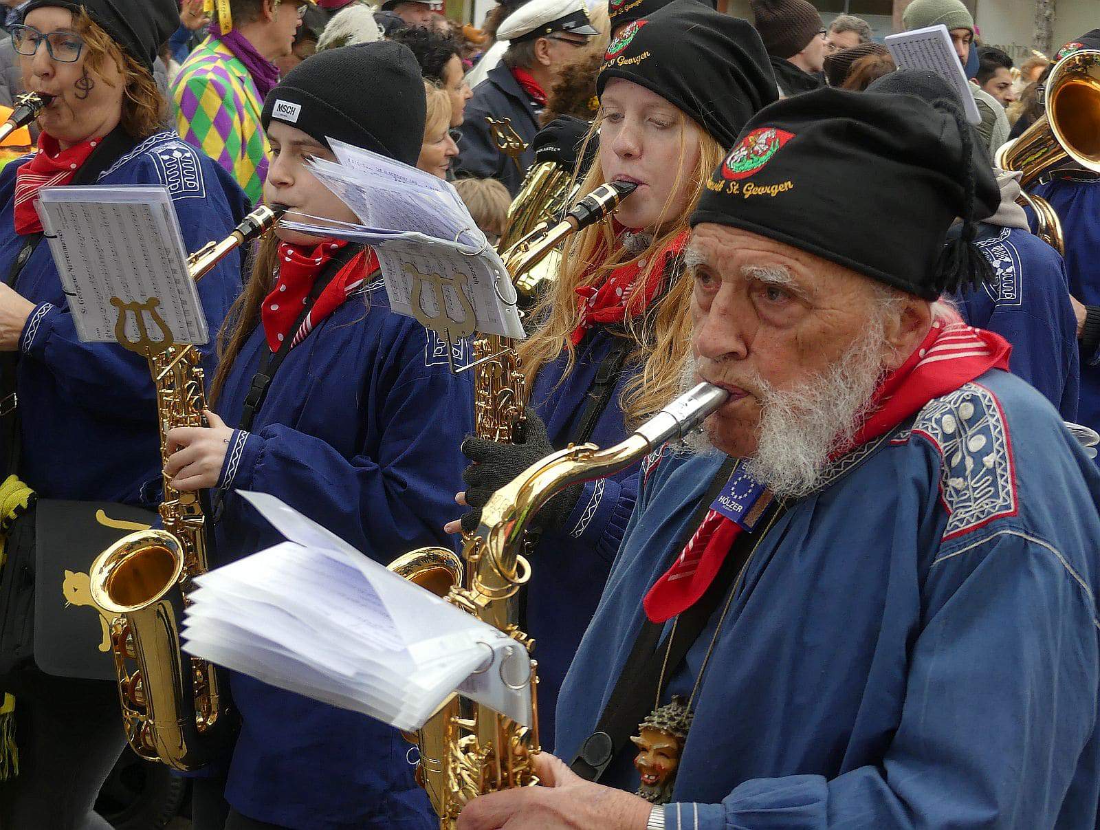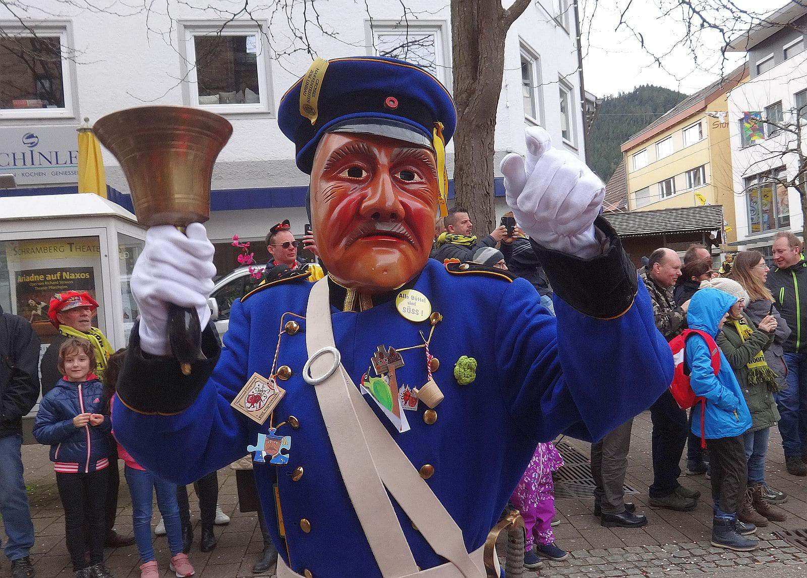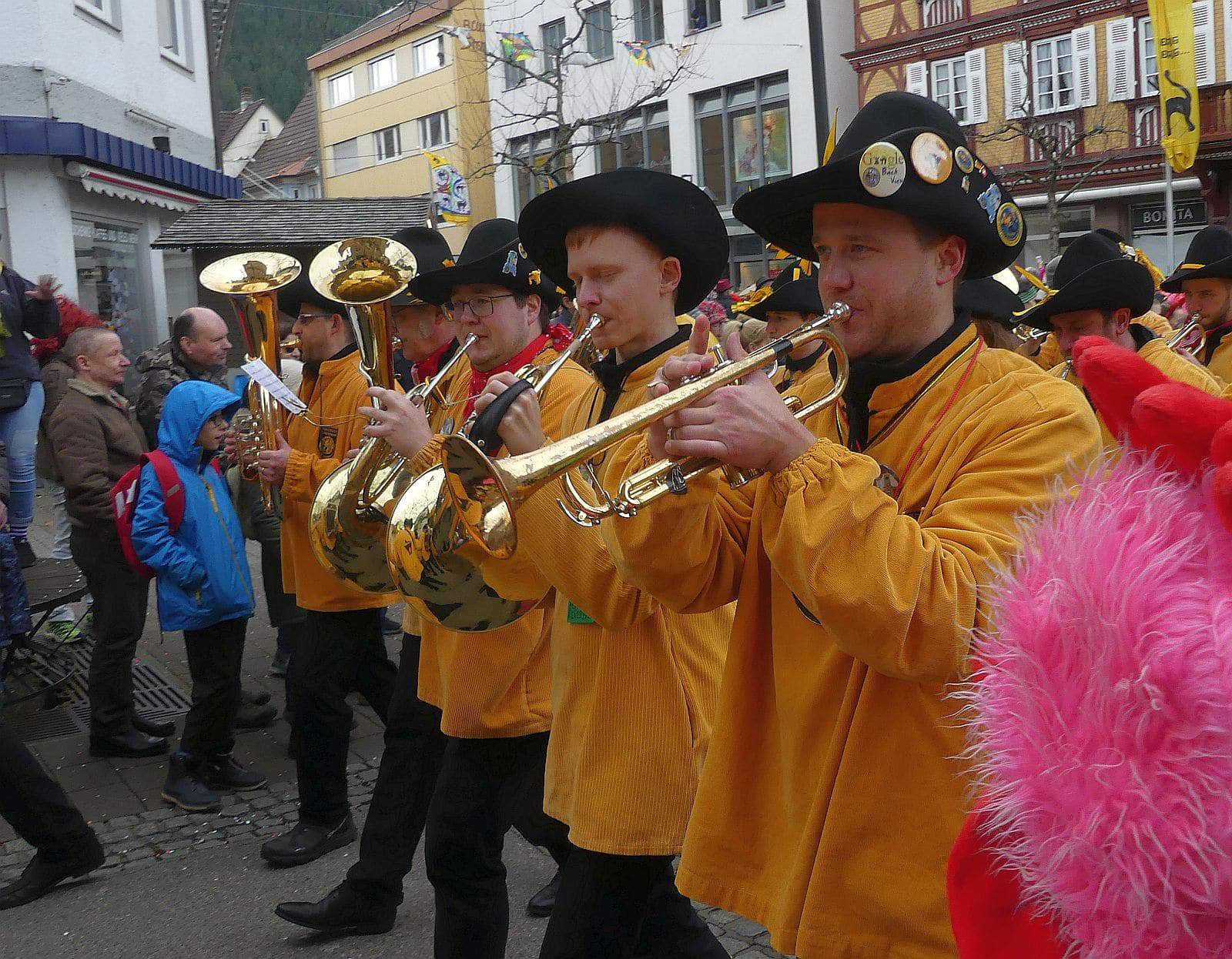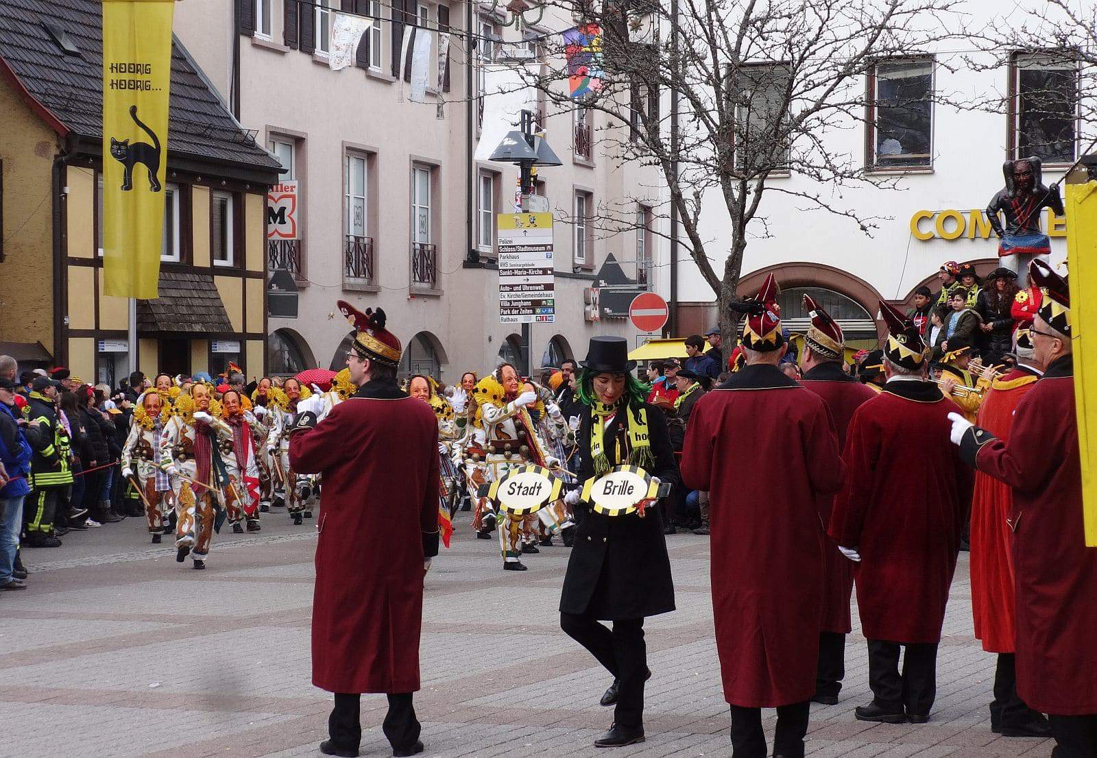 Wie seit Jahrzehnten schon, pünktlich um 14.30 Uhr zogen die Schramberger Narren vom Feuerwehrgerätehaus durch die Stadt zum Rathaus. Vorneweg die Stadtmusik und erstmals die neue Oberbürgermeisterin Dorothee Eisenlohr mit Stadtbrille und Elferräten und Obernarren.