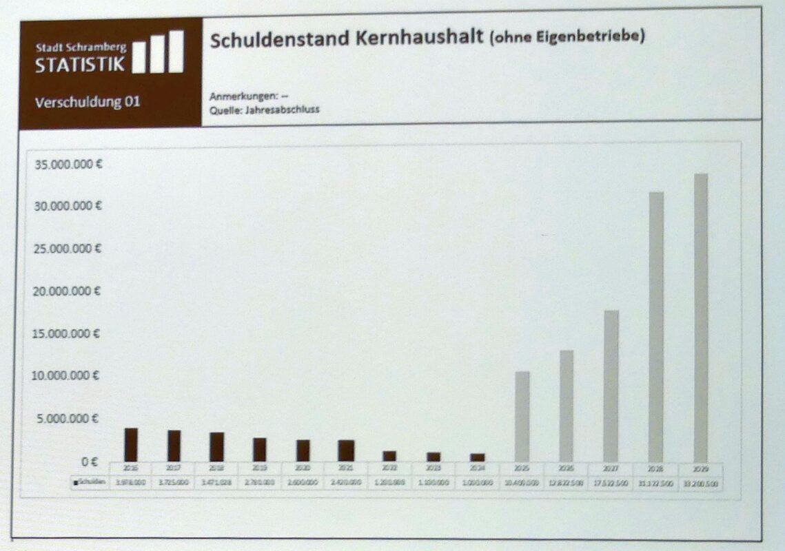 Schramberg. Beim Ergebnishaushalt mit einem Gesamtvolumen von mehr als 75 Millionen Euro gebe es ein leichtes Minus von 48.000 Euro, so Walter. Allerdings werde Schramberg gut neun Millionen Euro neue Kredite aufnehmen müssen.