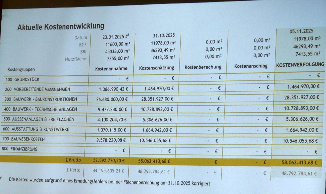 Abteilungsleiterin Kerstin Flaig berichtete von einem Gespräch im Regierungspräsidium und einem Entwurf zur Schulbaufinanzierung. Sie gehe von förderfähigen 6000 Quadratmeter Fläche (von insgesamt 6795 Quadratmetern) aus. Davon müssten 480 Quadratmeter abgezogen werden. Diese stammen aus den alten Gebäuden, die das Regierungspräsidium nicht abgesprochen hatte.