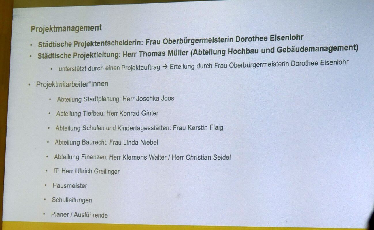 Man habe kein eigenes Projektmanagement beauftragt, weil im nicht-öffentlichen Teil der Sitzung im Sommer die Frage eines Generalunternehmers oder einer öffentlich-privaten Partnerschaft offen war. „Deshalb haben wir auf die Meilensteine verzichtet.“