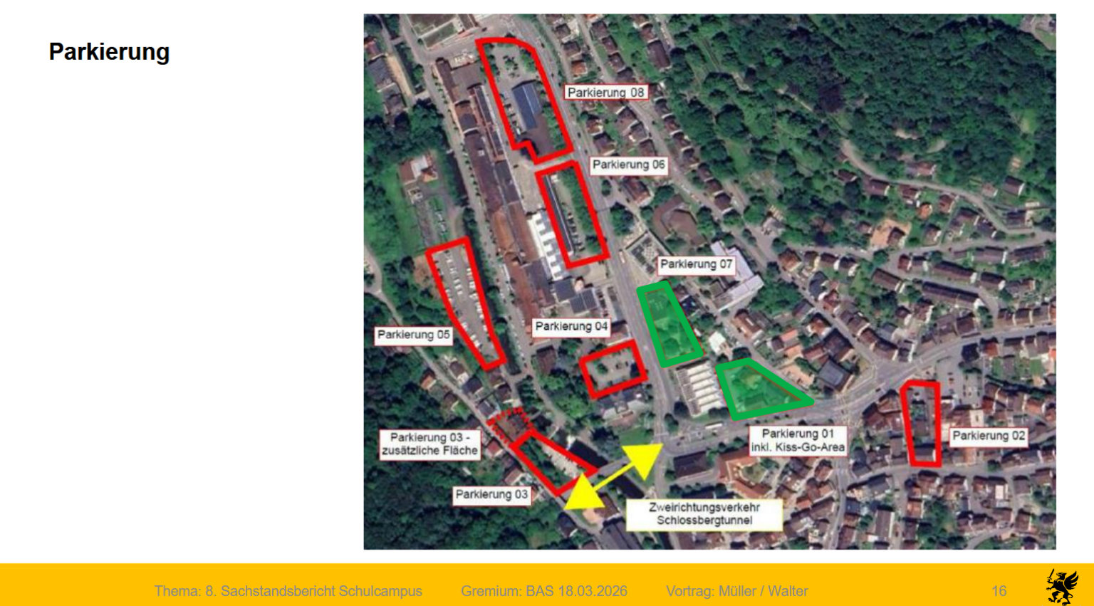 Bei der Parkierung bat Müller, der Ausschuss möge festlegen, dass die beiden Flächen 1 und 7 auf dem Campusgelände für die Parkierung näher untersucht werden.