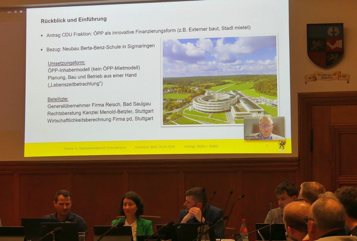Stadtkämmerer Klemens Walter erinnerte an einen CDU-Antrag, dass die Stadt solche Modelle wie Generalübernehmer oder ÖPP prüfen möge. Daraufhin habe die Verwaltung sich in Sigmaringen über die Berta-Benz-Schule informiert, die nach dem ÖPP-Modell gebaut worden war. Walter erklärte, das Modell der gewerkeweisen Vergabe in Eigenregie sei gesetzlich so vorgesehen. Wenn eine Kommune ein anderes Modell wähle, sei das dann möglich, wenn wirtschaftliche oder technische Gründe dafür sprächen Dazu sei die vorläufige Wirtschaftlichkeitsuntersuchung erforderlich.