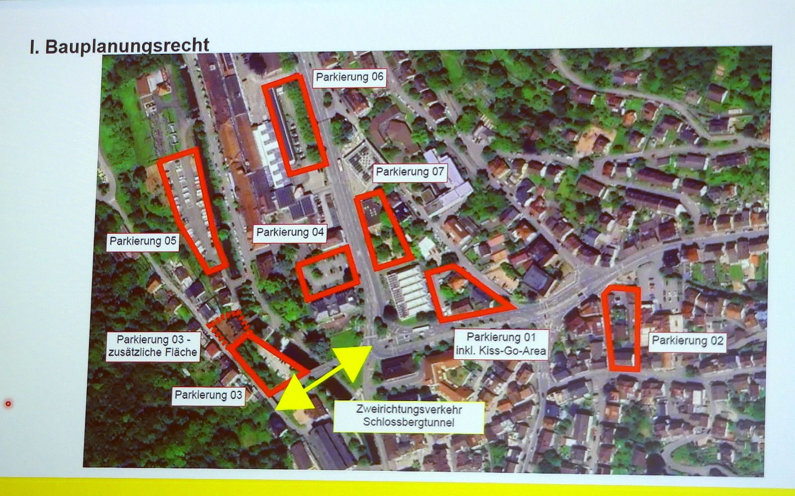 Stadtplaner Joschka Joos informierte zum Planungsrecht, dass man den bebauungsplan wieder angehe, sobald die erforderlichen Grundsatzbeschlüsse vorliegen. Das betreffe beispielsweise das Mobilitätskonzept und die Parkierungsfrage. Bei letzterem werde man auch die früher schon mal angedachten Flächen nochmals untersuchen, aber auch nach einer Lösung innerhalb des Gebietes schauen.
