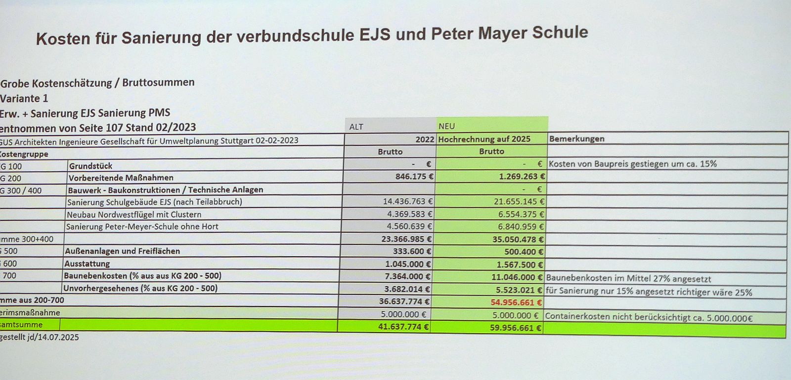 ...aber Sanierung der drei Schulen wäre mit 60 Millionen Euro noch teurer