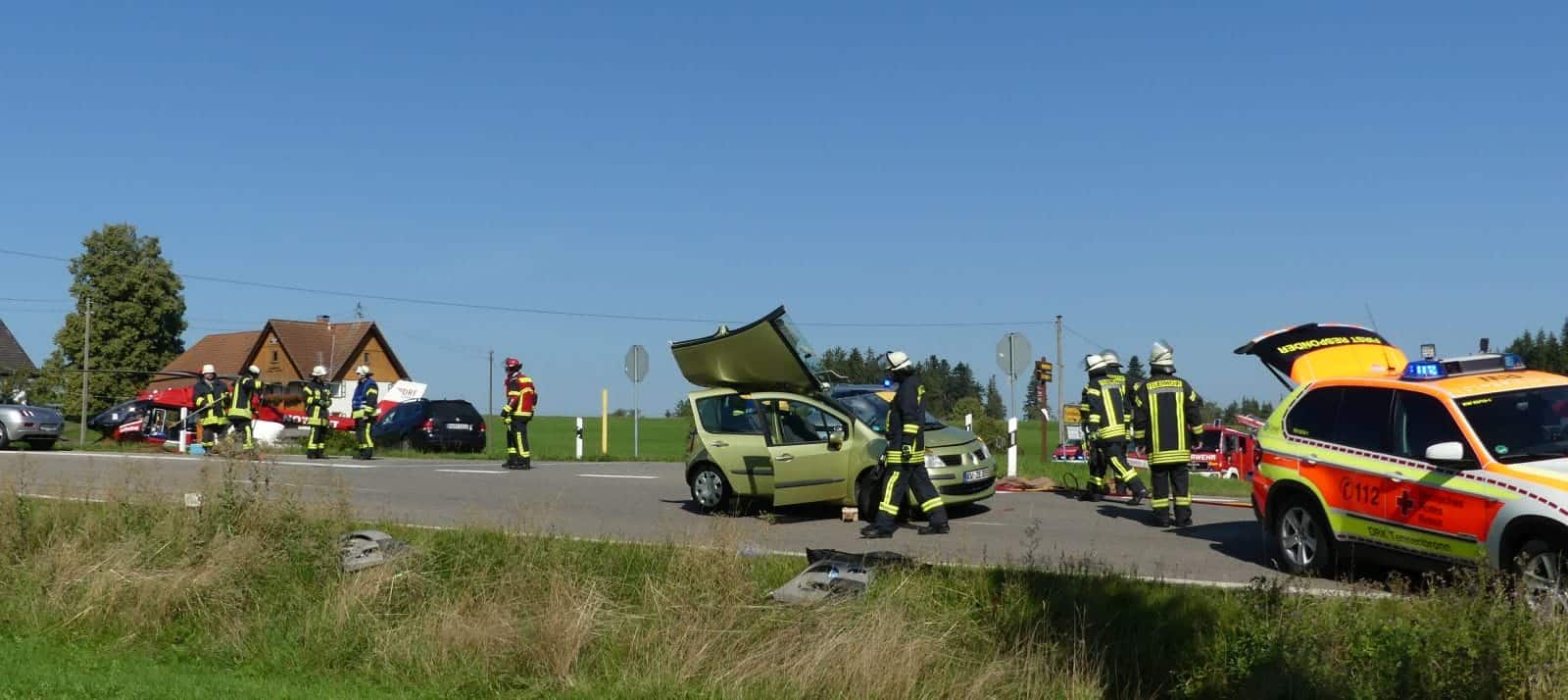 An einer Kreuzung waren ein Fiat Sportwagen und ein Renault zusammengeprallt, weil der Fahrer des Renault von Tennenbronn kommend die Vorfahrt des Fiatfahrers, der von Hardt Richtung St. Georgen fuhr, missachtet hatte. Der Fahrer des Renault wurde in seinem Wagen eingeklemmt und von der Feuerwehr befreit. Die Beifahrerin im Renault und der Fiatfahrer blieben offenbar unverletzt.