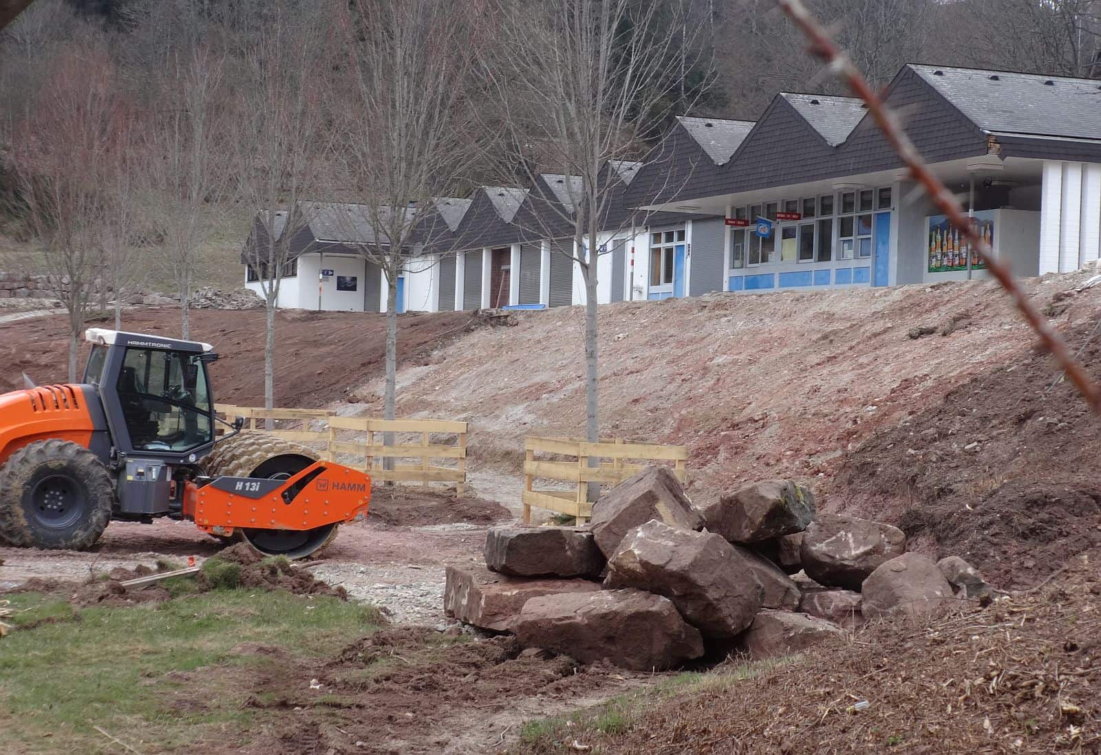Bis Ende April werde es noch viel LKW-Verkehr im Affentäle geben, denn es werden viele hundert Tonnen Material auf das Gelände gebracht und eingebaut werden, so Kälble. Danach wird die von Anfang an vorgesehene Ruhezeit eintreten. Damit der Boden wirklich stabil für den Einbau der neuen Stahlbecken ist, muss der Boden sich mindestens sechs Monate setzen können. „Das war immer so geplant“, so Kälble. „Nach der Setzzeit werden wir im Herbst mit den großen Gewerken loslegen.“
