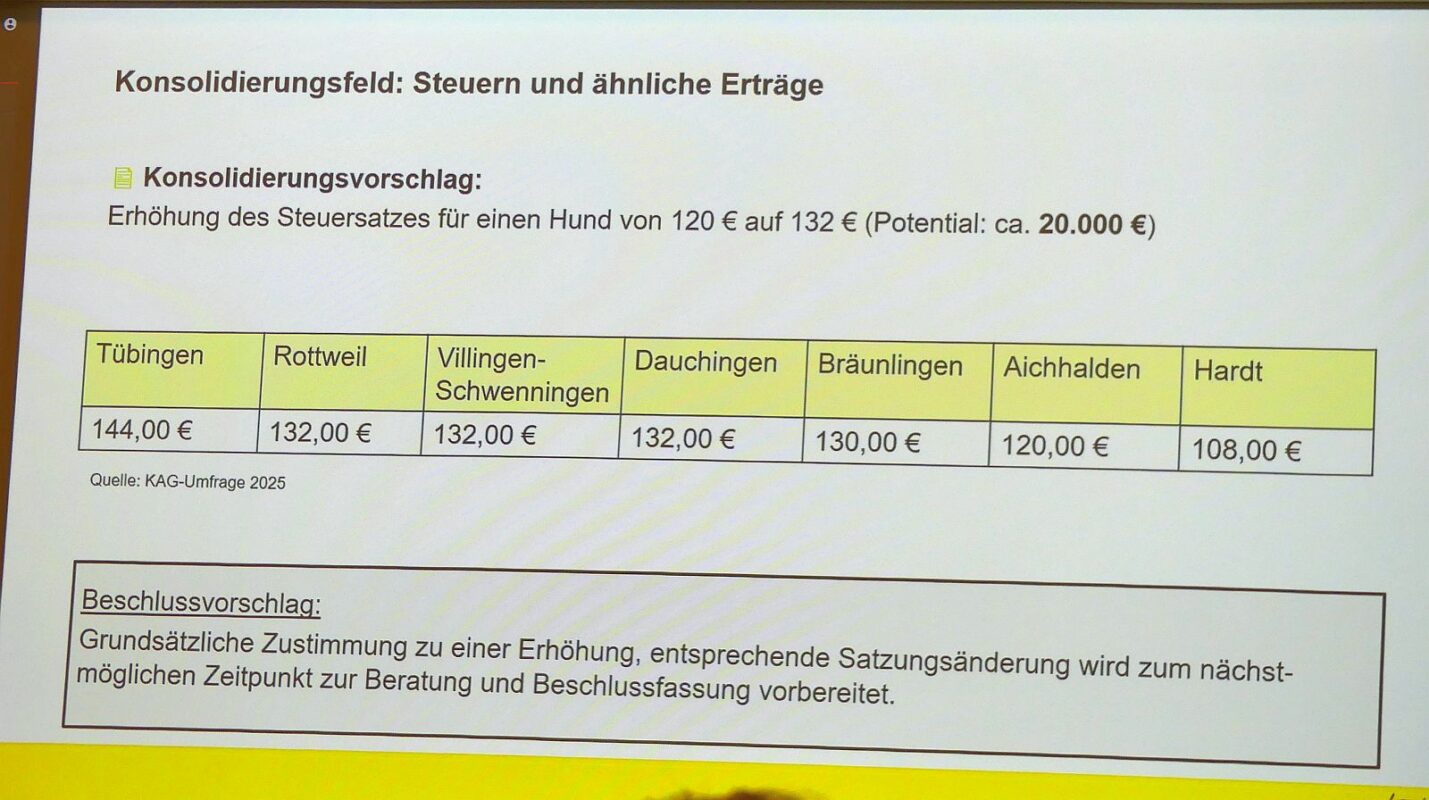 Die AfD-Vertreterin aus Waldmössingen Brigitte Kronenbitter nahm zur Erhöhung der Hundesteuer Stellung. Nach einer langen Ausführung zum Sinn der Hundesteuer und zu Hundesteuertarifen in anderen kleineren Gemeinden stellte sie fest, der Durchschnitt läge bei 111 Euro in den großen Kreisstädte. Schramberg steht mit 132 an der Spitze und entwickle sich zur „hundefeindlichsten Stadt“.
