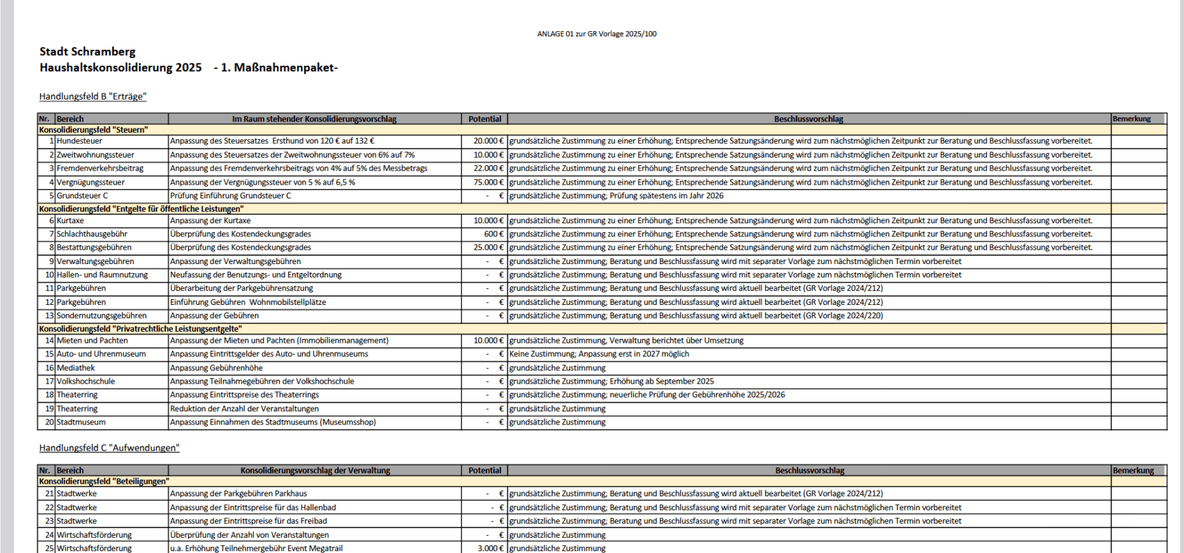 Am Ende votierte der Gemeinderat bei Enthaltungen von Eisenlohr und Kronenbitter für die Formulierung, der Gemeinderat signalisiere, dass die dargestellten Konsolidierungsmaßnahmen mittragen würden. Außerdem solle die Verwaltung die Auswirkungen bis zum 2. Oktober klar darlegen.