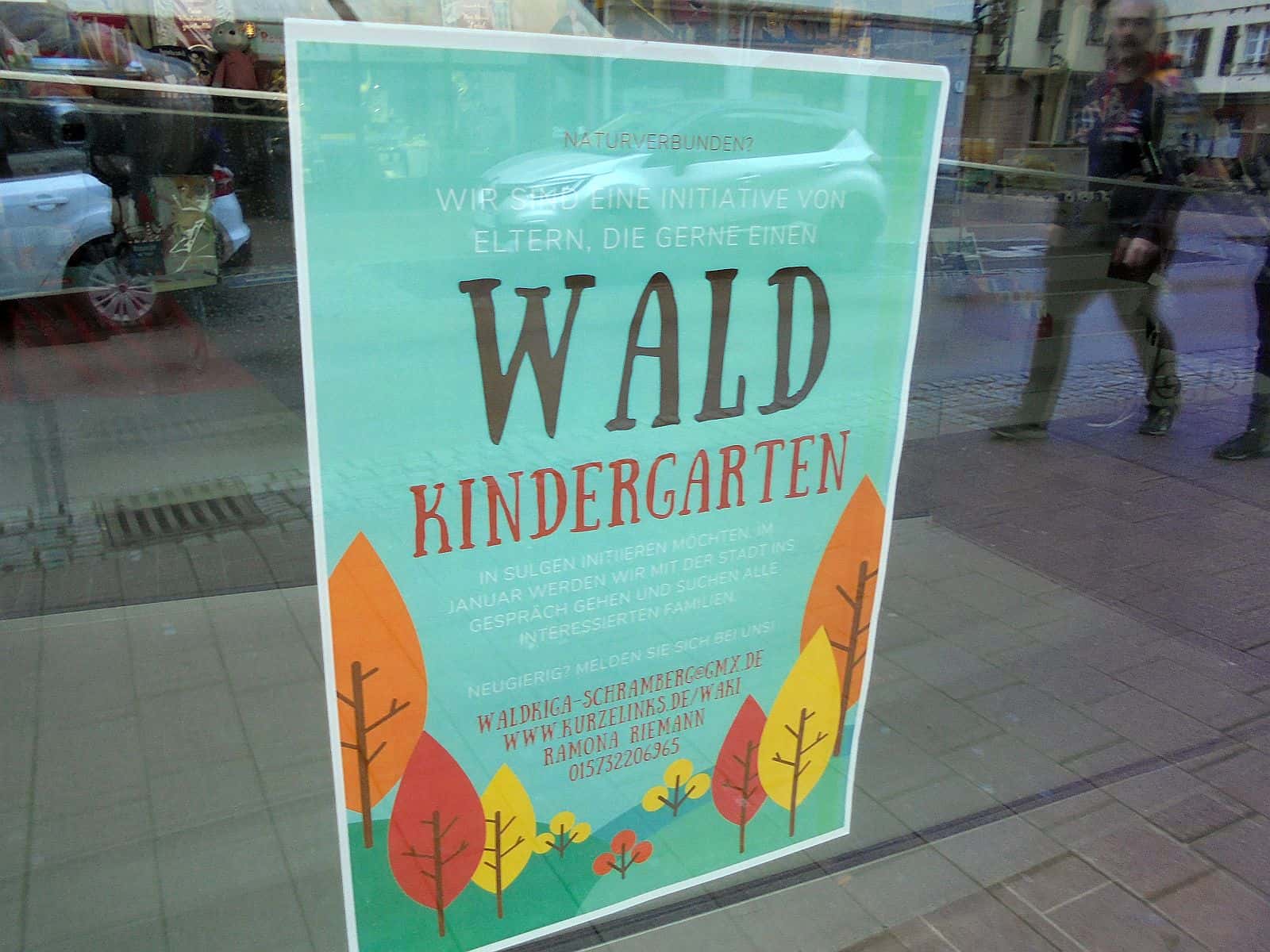 Eine Elterninitiative plant einen neuen Waldkindergarten in Sulgen. Auf Plakaten in der Stadt und im Internet werben die Eltern für ihr Projekt: „Wir sind ein Haufen Mamas und Papas, die gerne einen Waldkindergarten in Sulgen initiieren möchten“, schreiben sie auf ihrer Homepage. Deshalb suchten sie Mitstreiter, also Eltern, „die gerne draußen in der Natur sind und sich für ihr Kind das Gleiche wünschen“.