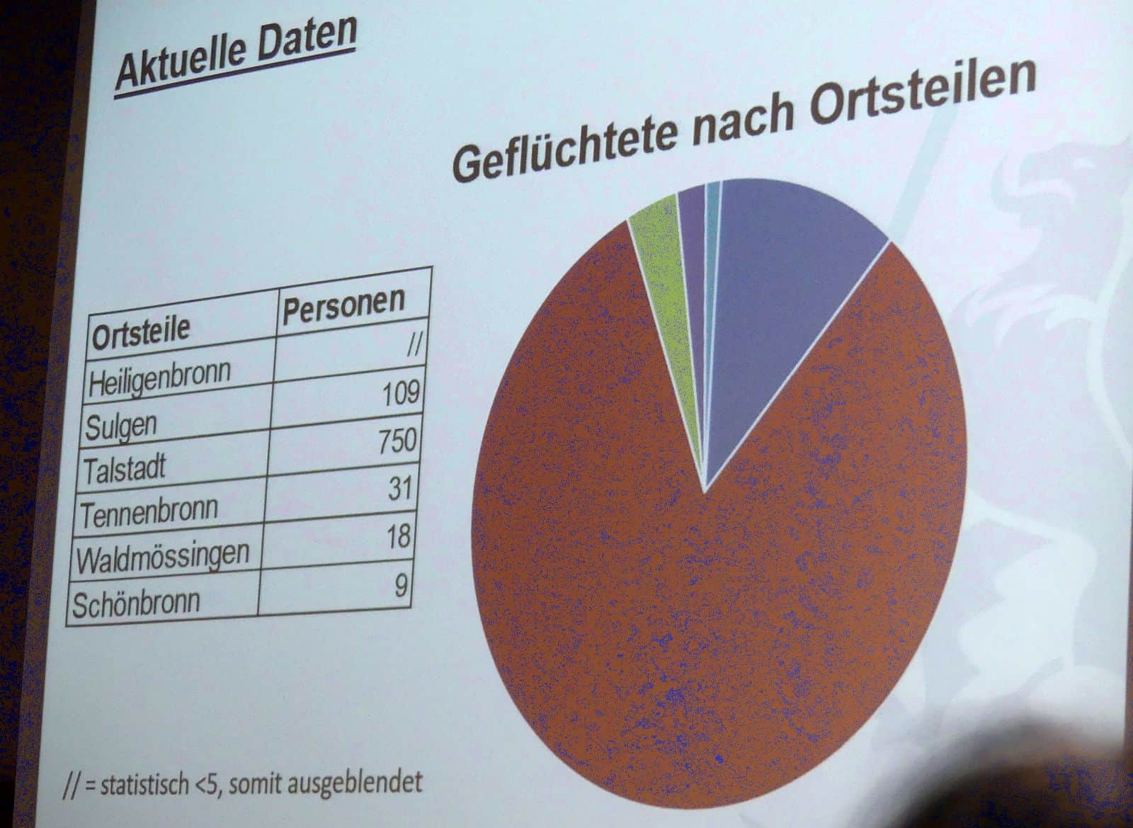 Die weit überwiegende Mehrheit der Geflüchteten lebe in der Talstadt, nämlich 750. 109 leben in Sulgen, 31 in Tennenbronn, 18 in Waldmössingen, neun in Schönbronn, weniger als fünf in Heiligenbronn.