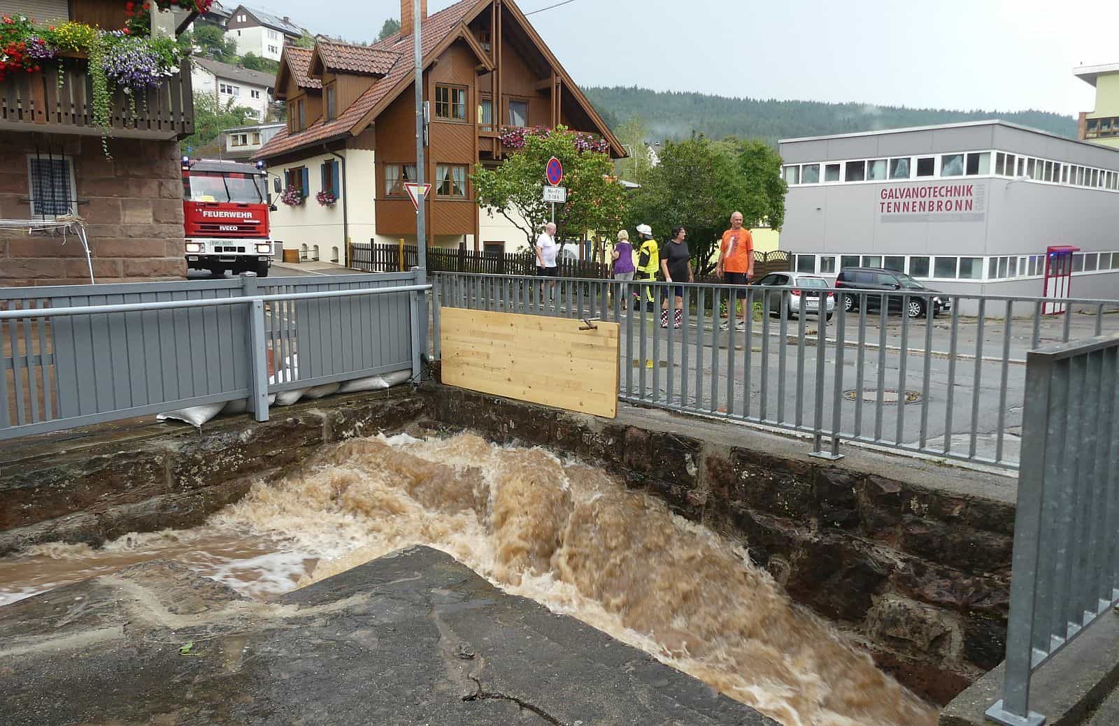 Schramberg. Als vor ziemlich genau fünf Jahren in Tennenbronn ein verheerendes Gewitter für massive Überschwemmungen sorgte, wunderten sich Fachleute, wie man den Eichbach so verquer verdohlen konnte. An zwei Stellen muss das Wasser in einem rechten Winkel um die Ecke fließen. Klar, dass das nicht funktionieren konnte. Die Wassermassen ergossen sich auf die Straße, in Keller und – besonders gefährlich – in die Räume einer angrenzenden Galvanikfirma.
