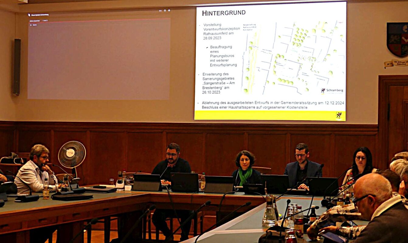 Schramberg. Stadtplaner Joschka Joos warb erneut dafür, das Rathausumfeld attraktiver zu machen. Es solle „mehr grün als auf dem anderen Rathausplatz“ in die Stadt kommen. Das Büro faktorgruen hatte Ende 2024 zwei Varianten für die Platzgestaltung vorgestellt. Der Gemeinderat lehnte das gut 700.000 Euro teure Vorhaben rundweg ab, forderte eine kostengünstigere Variante.